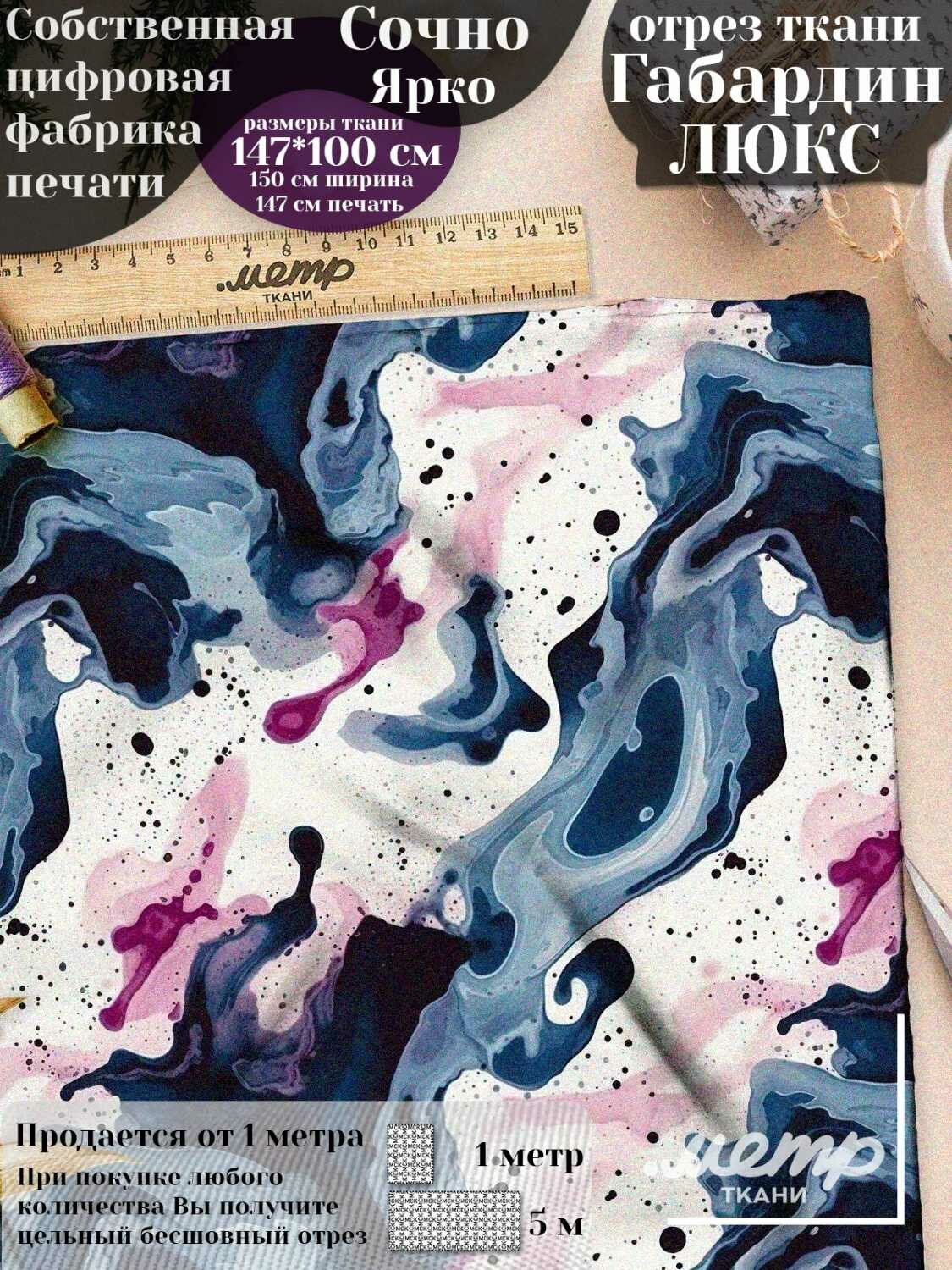 Ткань габардин с принтом для шитья, рукоделия, костюмов. 150*100 см, 160 гр/м2, отрез любой длины
