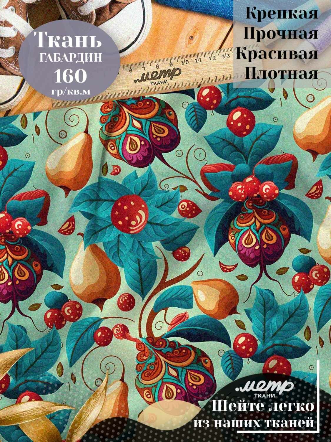 Ткань габардин с принтом для шитья, фартуков, костюмов. 150*100 см, 160 гр/м2, отрез любой длины