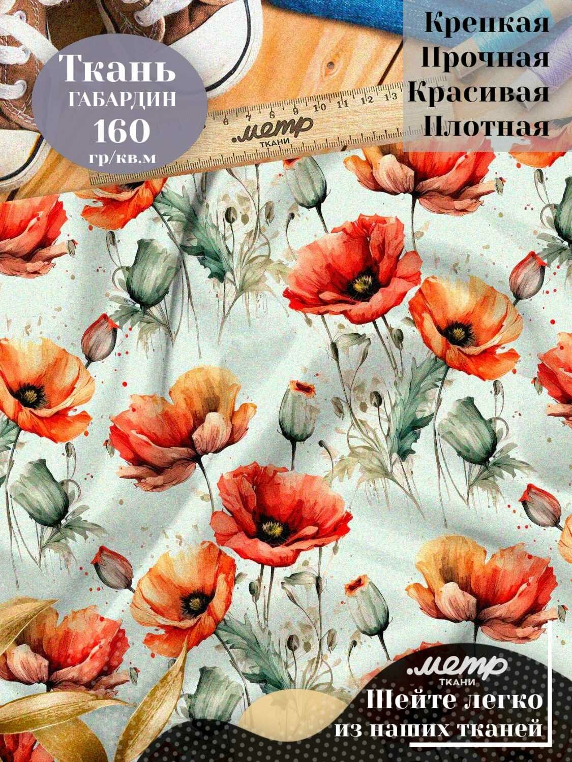 Ткань габардин с принтом для шитья, рукоделия, одежды. 160 гр/м2, размер 150*100 см, отрез любой длины