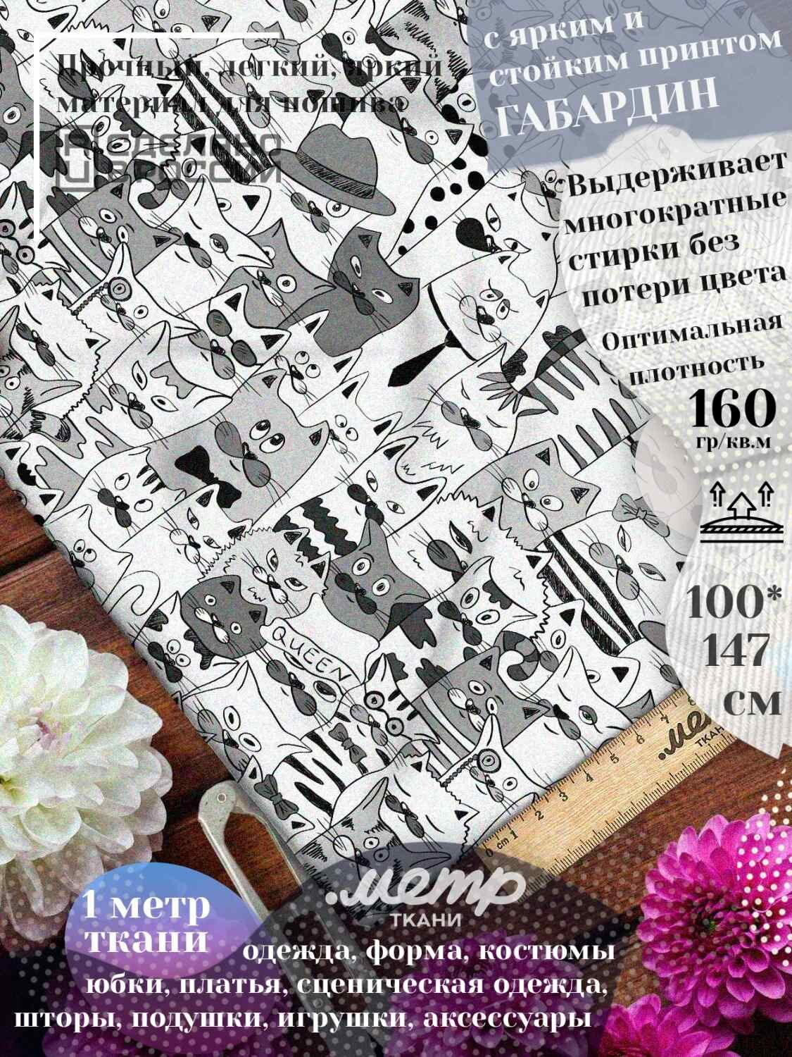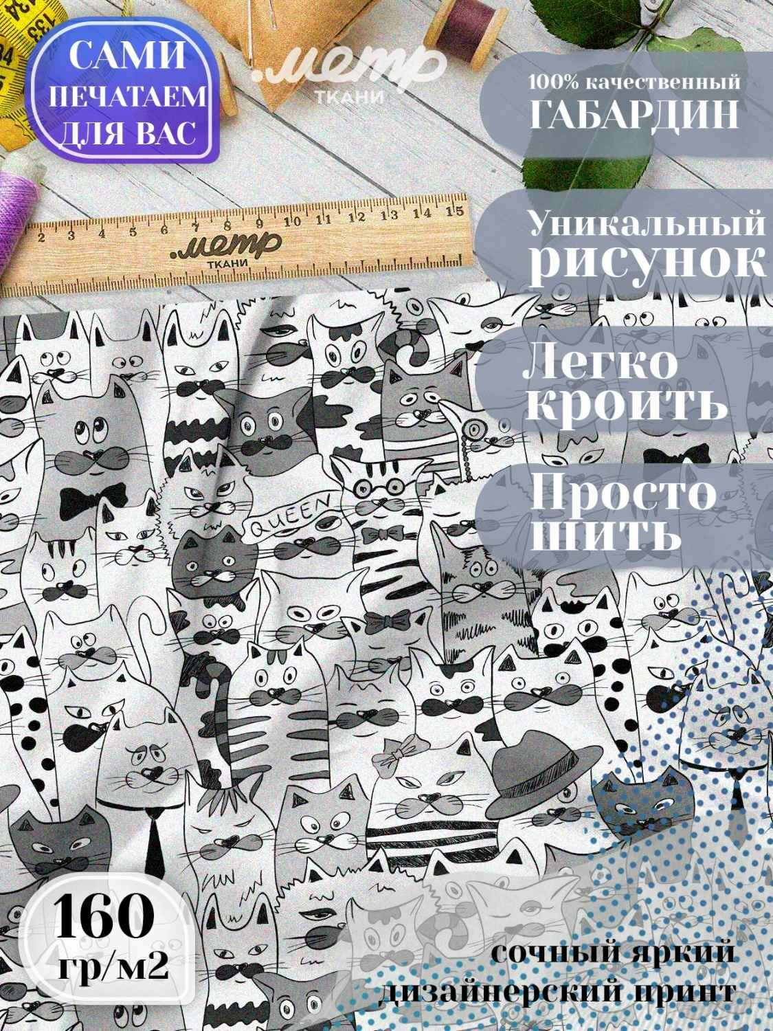 Универсальная ткань габардин с принтом для платьев, штор, подушек. 150*100 см, 160 гр/м2, отрез любой длины