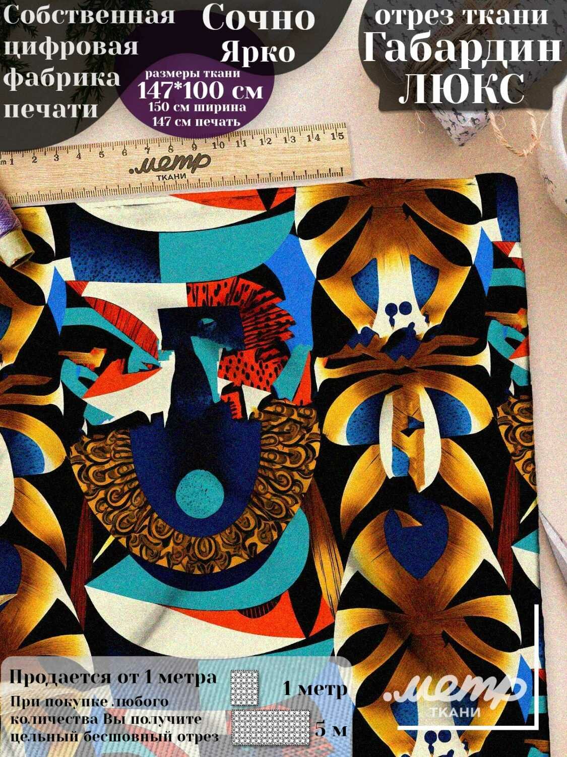 Ткань габардин с принтом для шитья, рукоделия, костюмов. 150*100 см, 160 гр/м2, отрез любой длины
