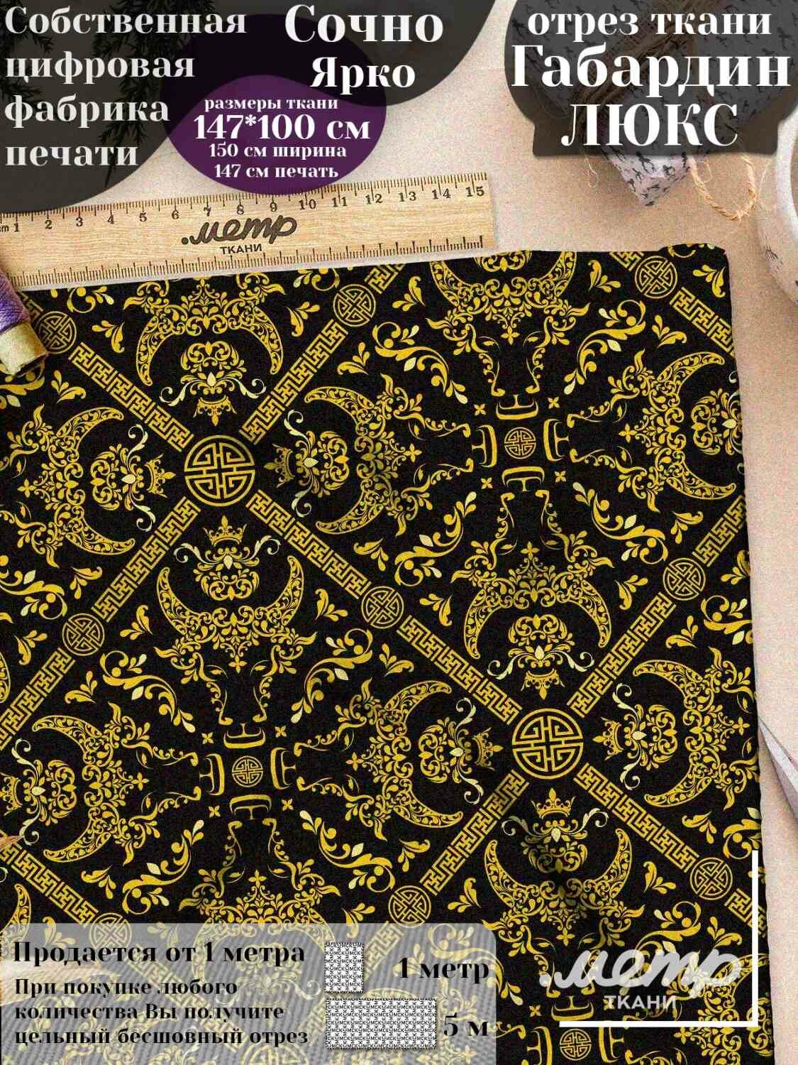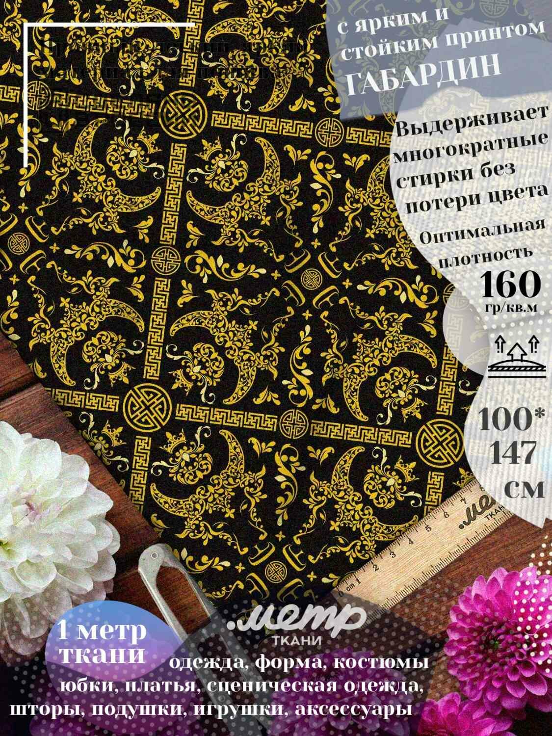 Практичная ткань габардин с принтом для одежды, подушек, штор. 160 гр/м2, размер 150*100 см, отрез любой длины