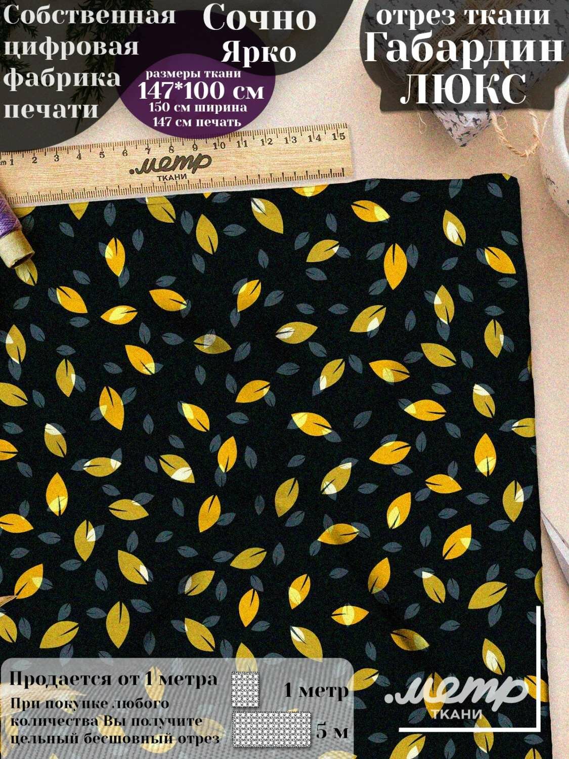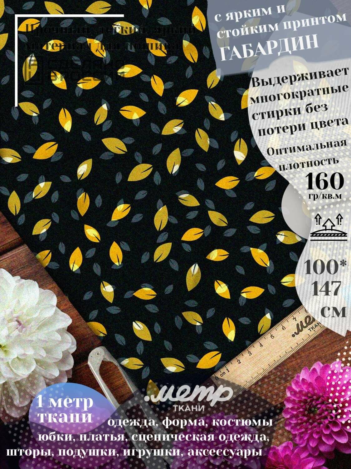 Практичная ткань габардин с принтом для одежды, подушек, штор. 160 гр/м2, размер 150*100 см, отрез любой длины