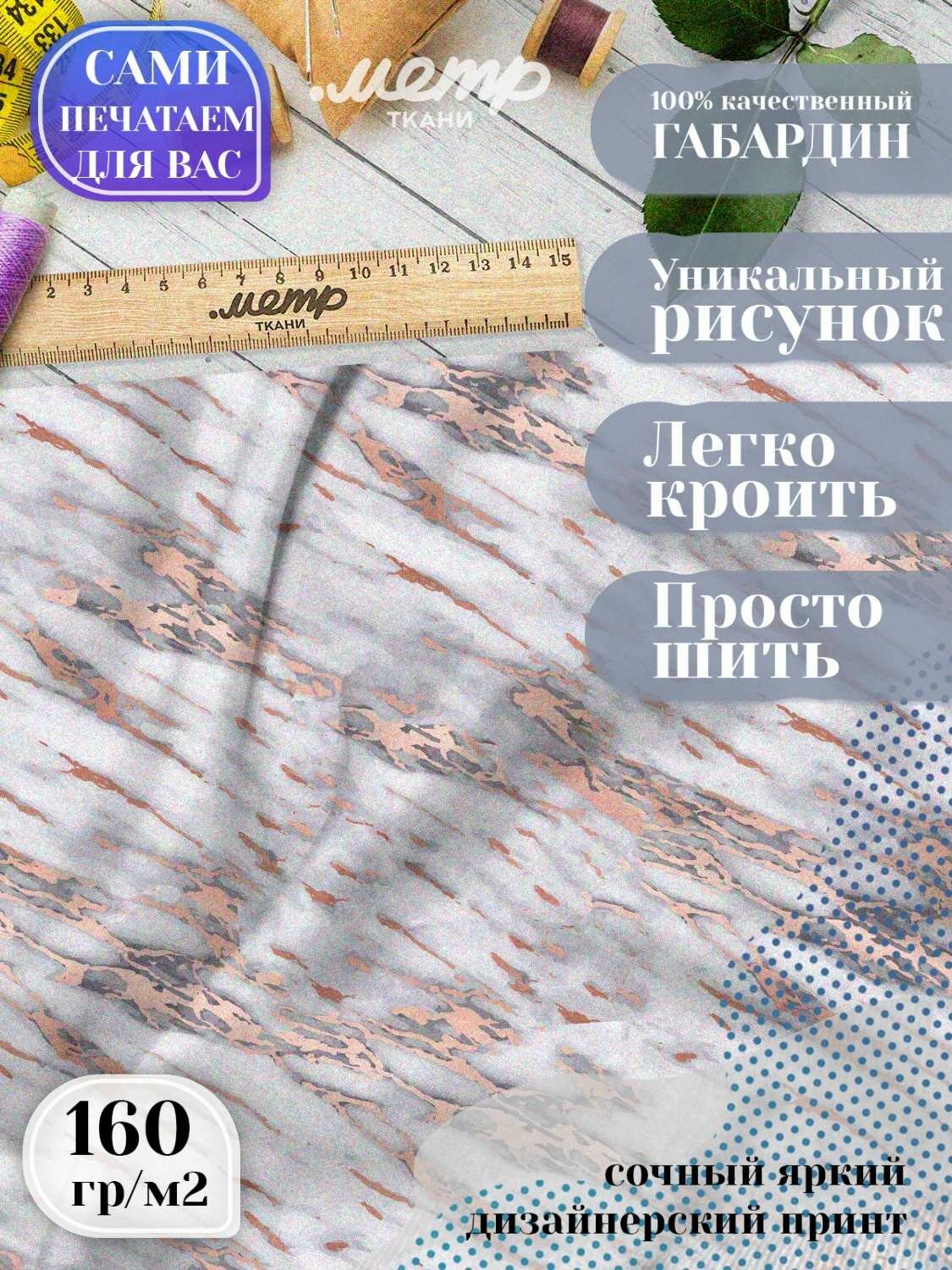 Ткань габардин с принтом для шитья, рукоделия, одежды. 160 гр/м2, размер 150*100 см, отрез любой длины