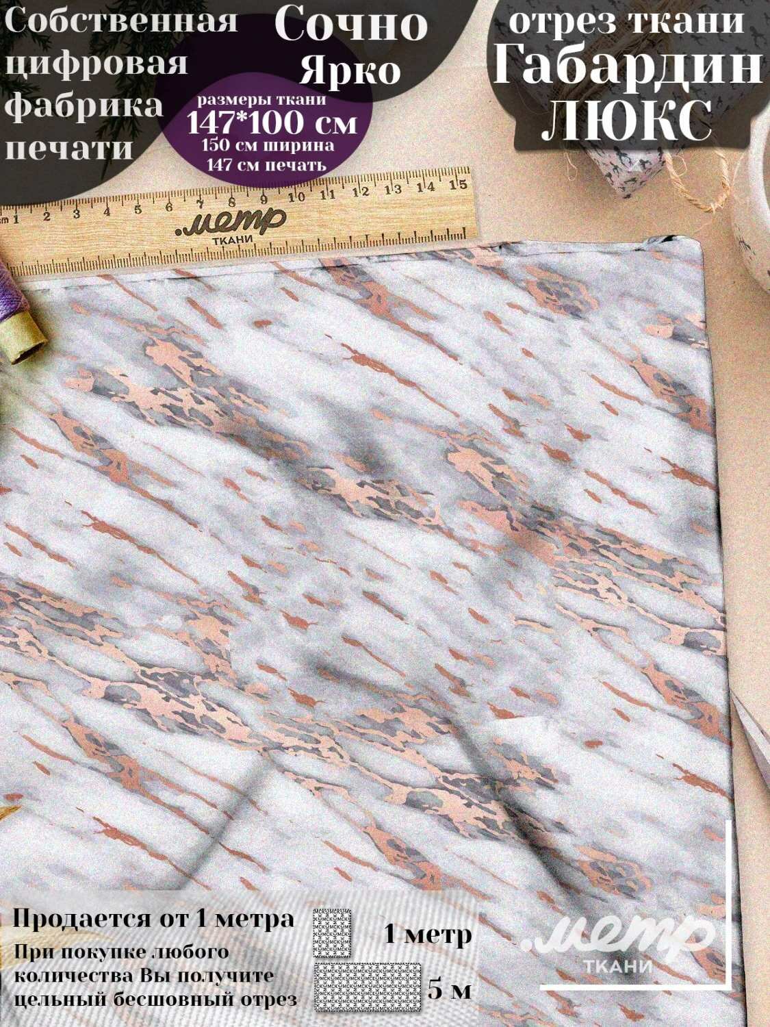 Практичная ткань габардин с принтом для одежды, подушек, штор. 160 гр/м2, размер 150*100 см, отрез любой длины