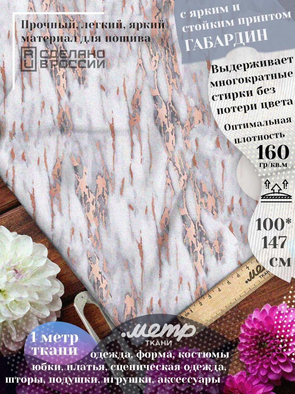 Ткань габардин с принтом для шитья, рукоделия, костюмов. 160 гр/м2, размер 150*100 см, отрез любой длины