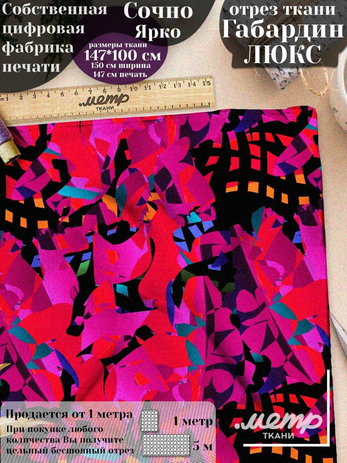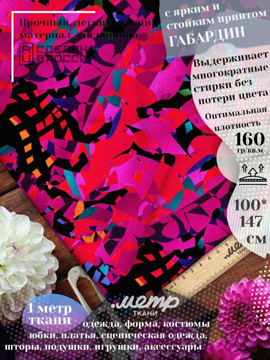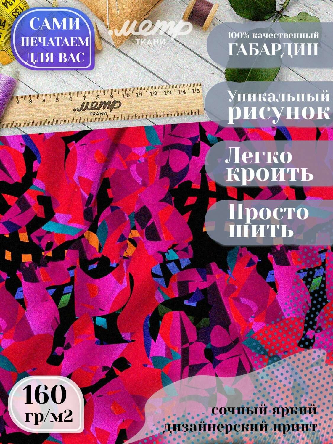 Ткань габардин с принтом для шитья, рукоделия, костюмов. 150*100 см, 160 гр/м2, отрез любой длины