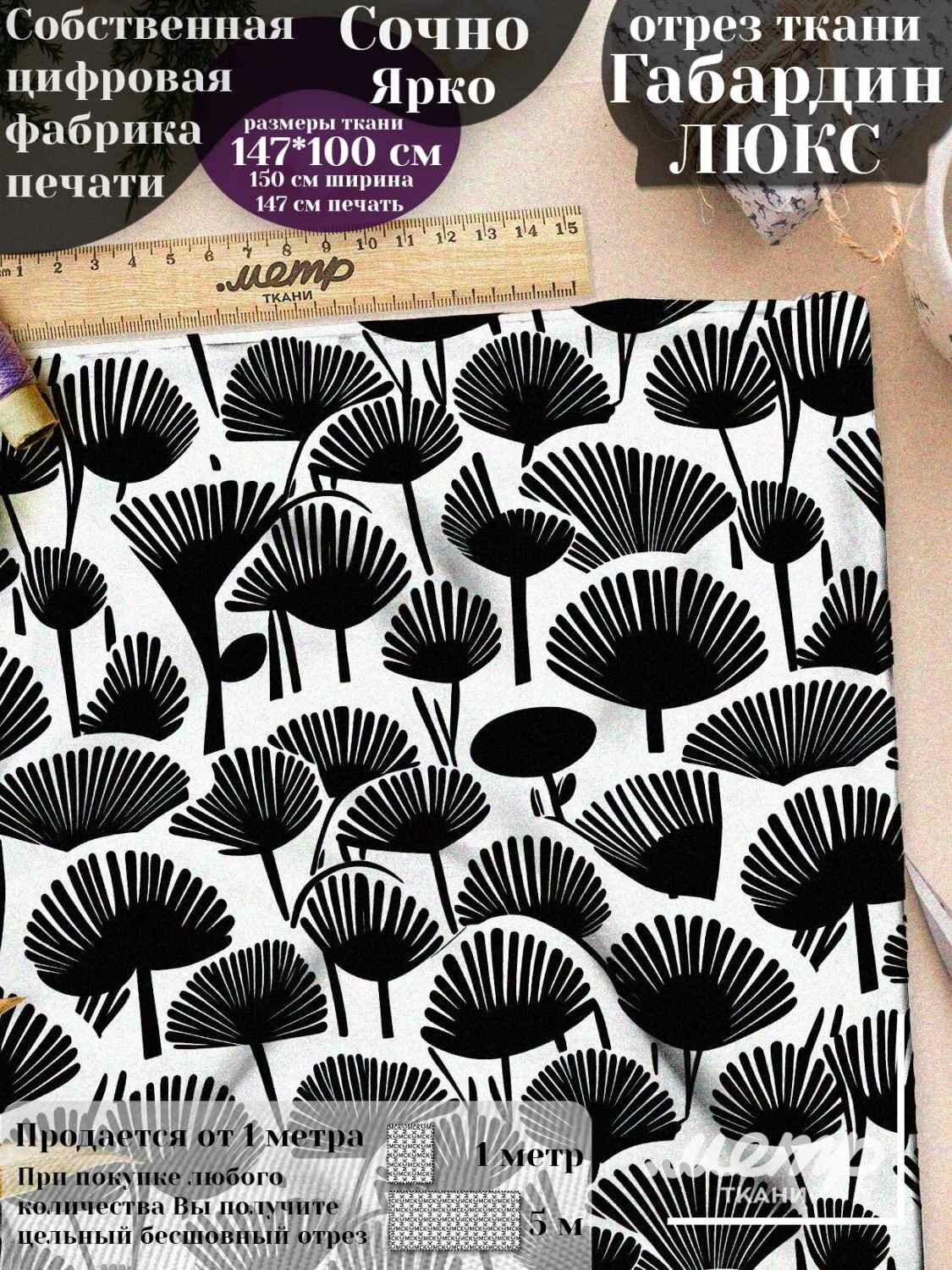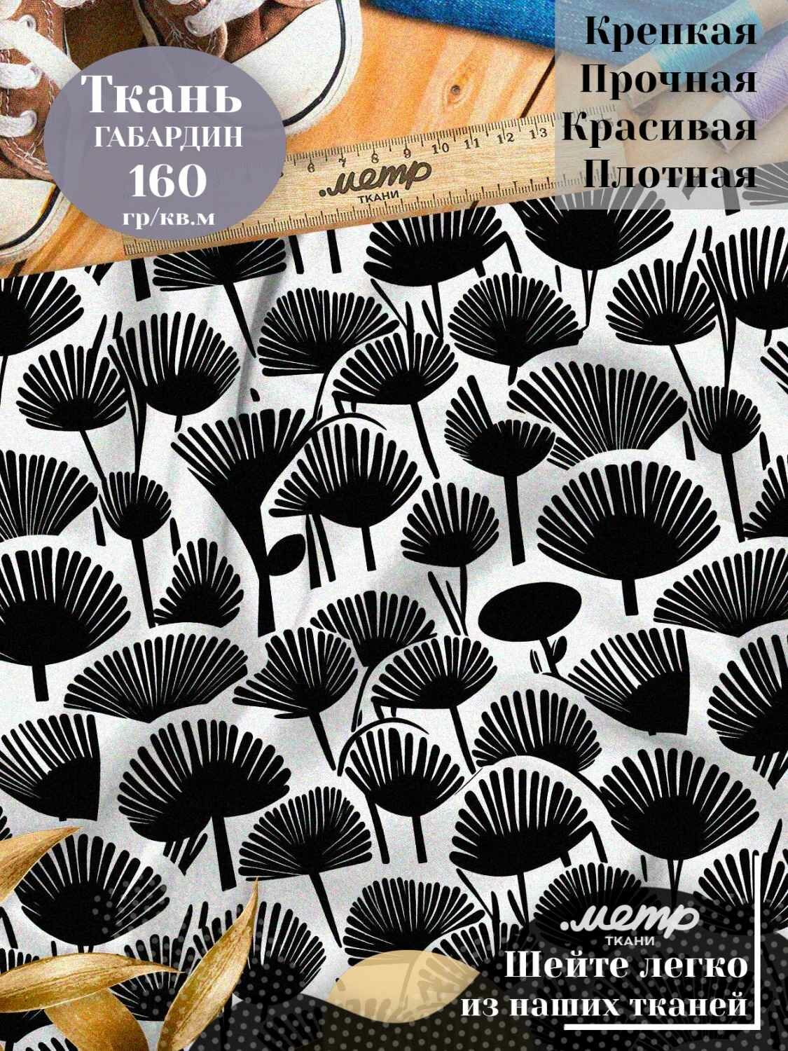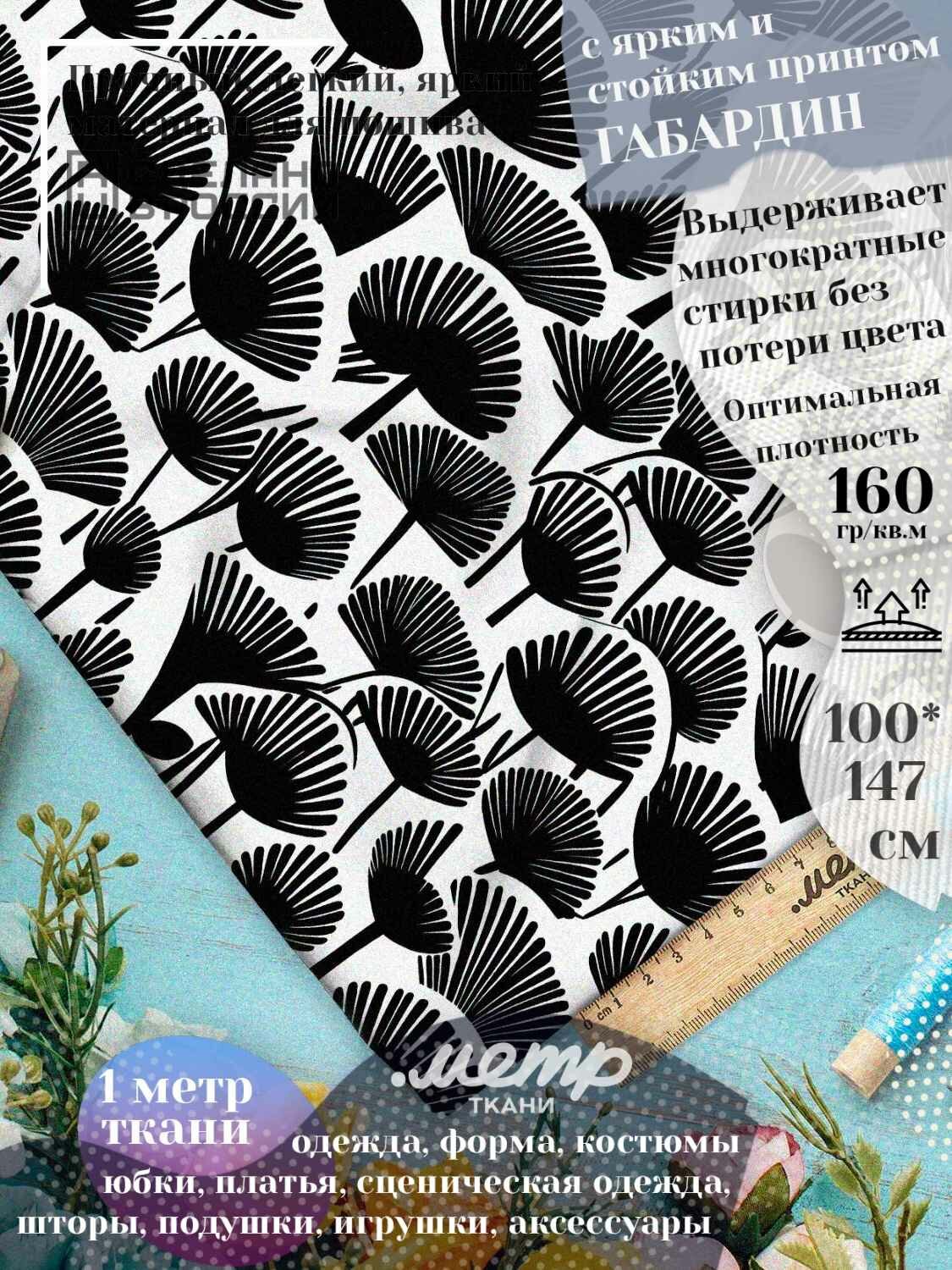 Практичная ткань габардин с принтом для одежды, подушек, штор. 160 гр/м2, размер 150*100 см, отрез любой длины