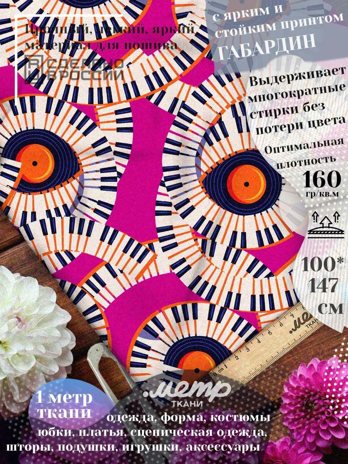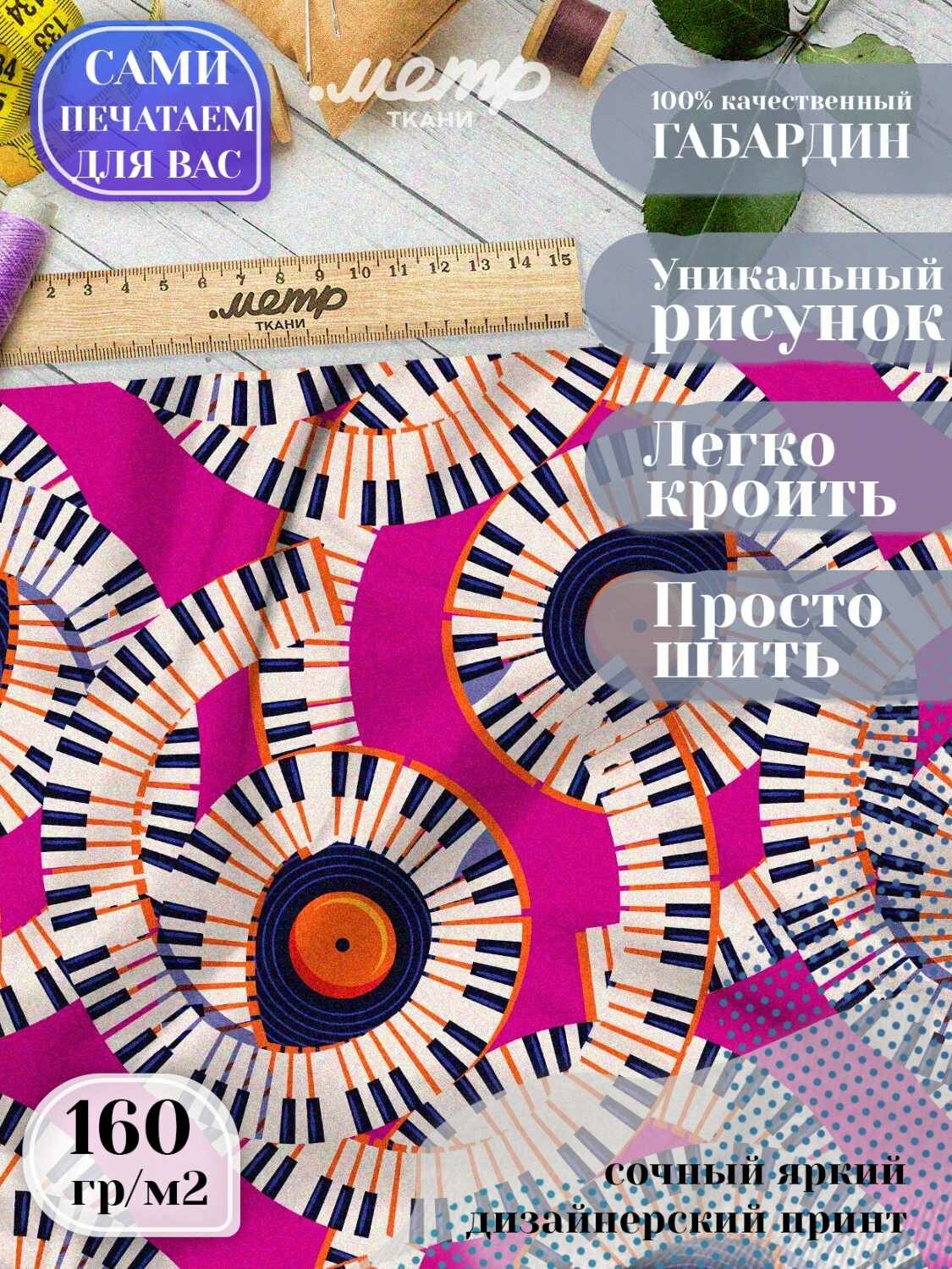 Ткань габардин с принтом для шитья, рукоделия, костюмов. 160 гр/м2, размер 150*100 см, отрез любой длины