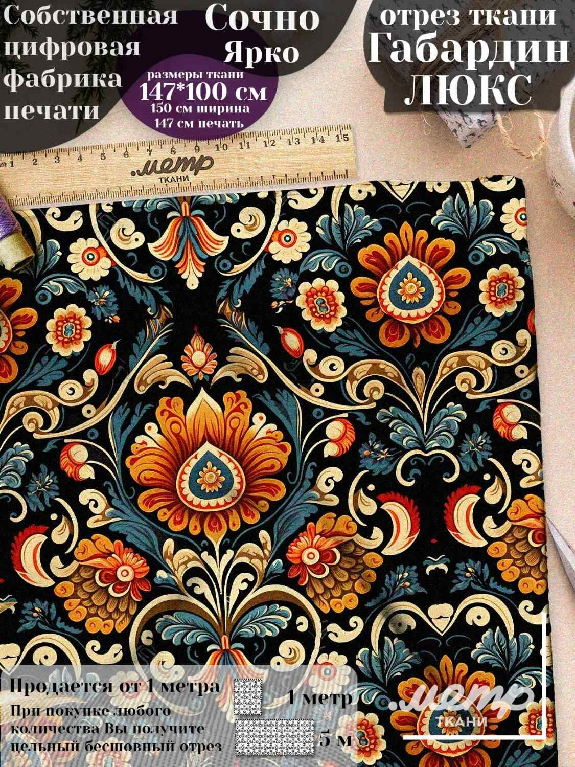 Ткань габардин с принтом для шитья, рукоделия, костюмов. 150*100 см, 160 гр/м2, отрез любой длины