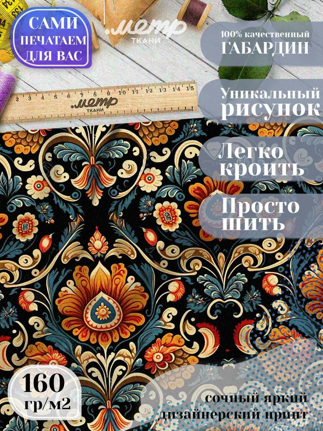 Ткань габардин с принтом для шитья, рукоделия, костюмов. 160 гр/м2, размер 150*100 см, отрез любой длины