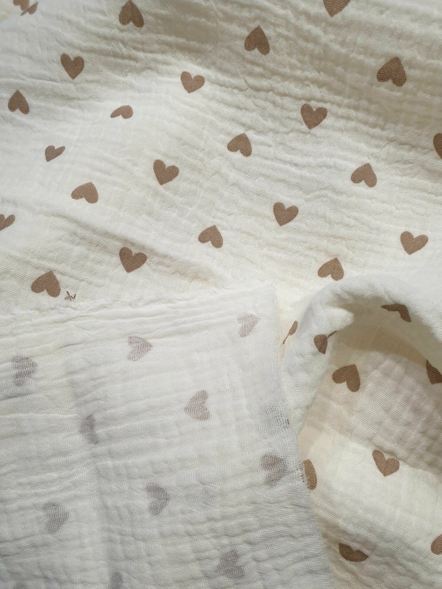 Купить Муслин жатка Двухслойный "сердечки" ширина 135-140см, высота 100см для пошива детской и взрослой одежды, одежды для новорожденных