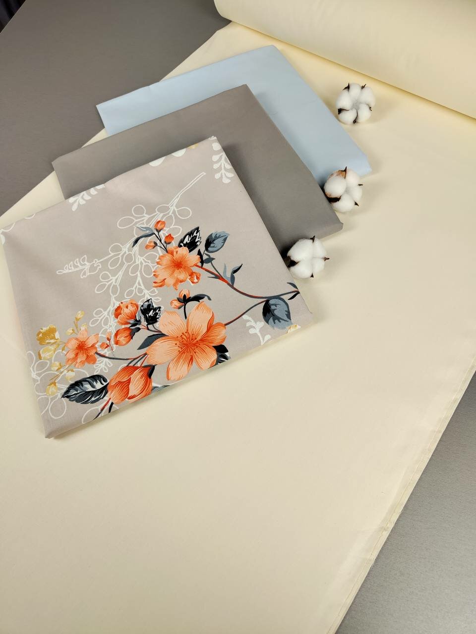 Ранфорс люкс (поплин Турция) ткань для пошива постельного белья , бежево-серый, метражом на отрез от 1 метра