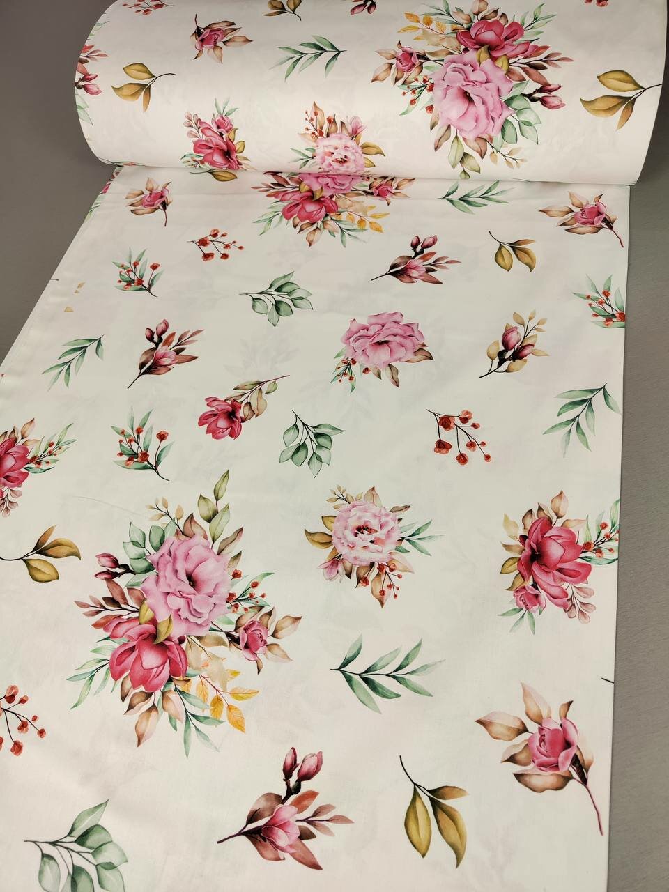 Ранфорс люкс (поплин Турция) ткань для пошива постельного белья , оранжевые цветы, метражом на отрез от 1 метра