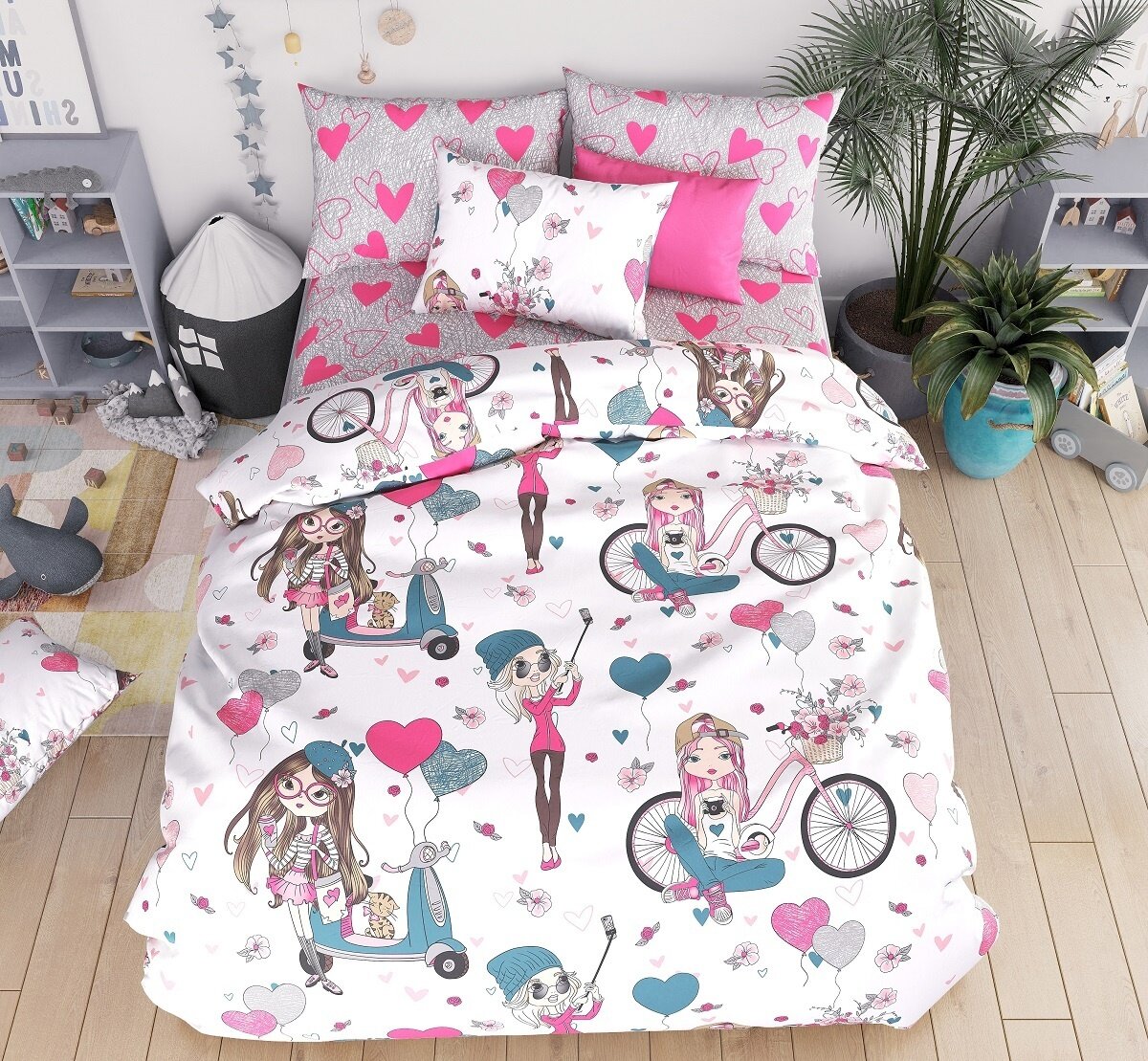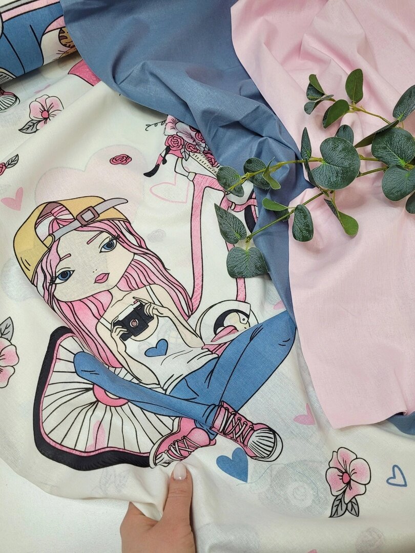 Купить Ткань Бязь Узбекистан "Девочки селфи" 100*150 см