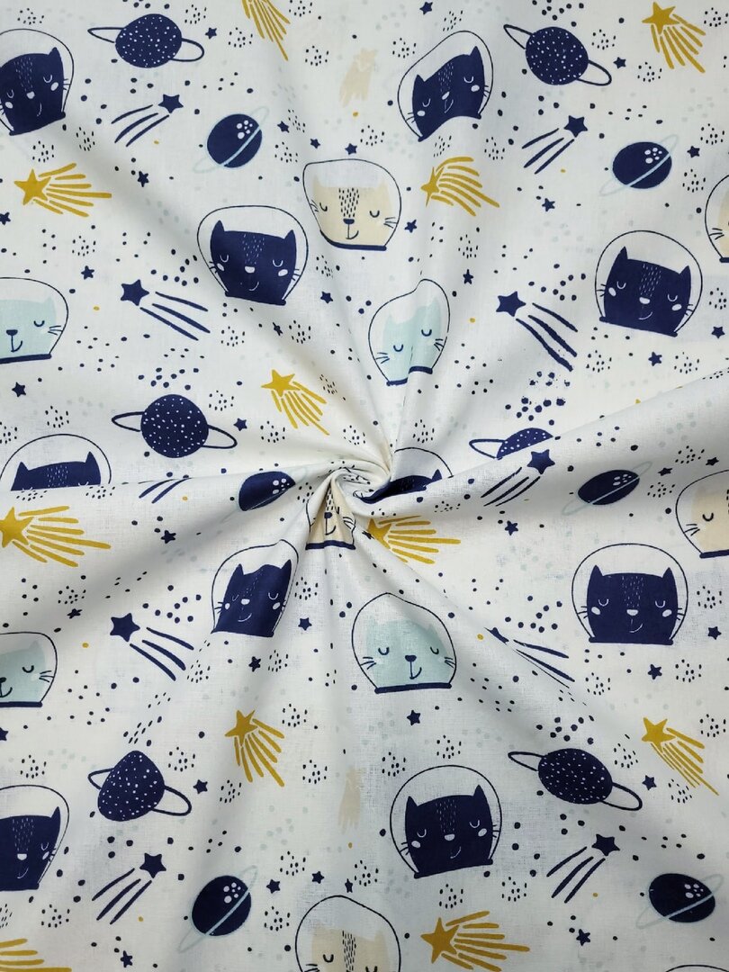 Купить Ткань Бязь Узбекистан "Коты космонавты" 100*150 см