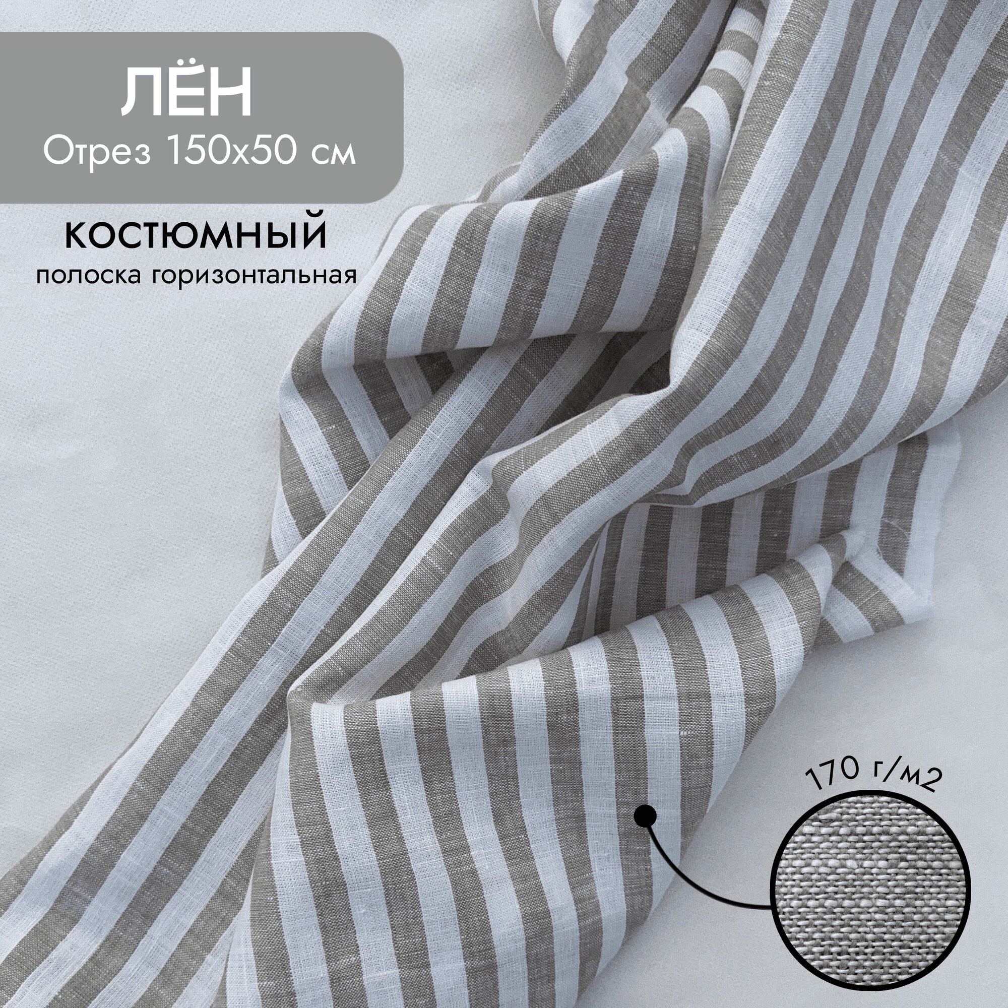 Ткань на отрез, костюмная лён 100% "Солнечный пляж" 0,5х1,5 м, песочный в полоску интересное:
