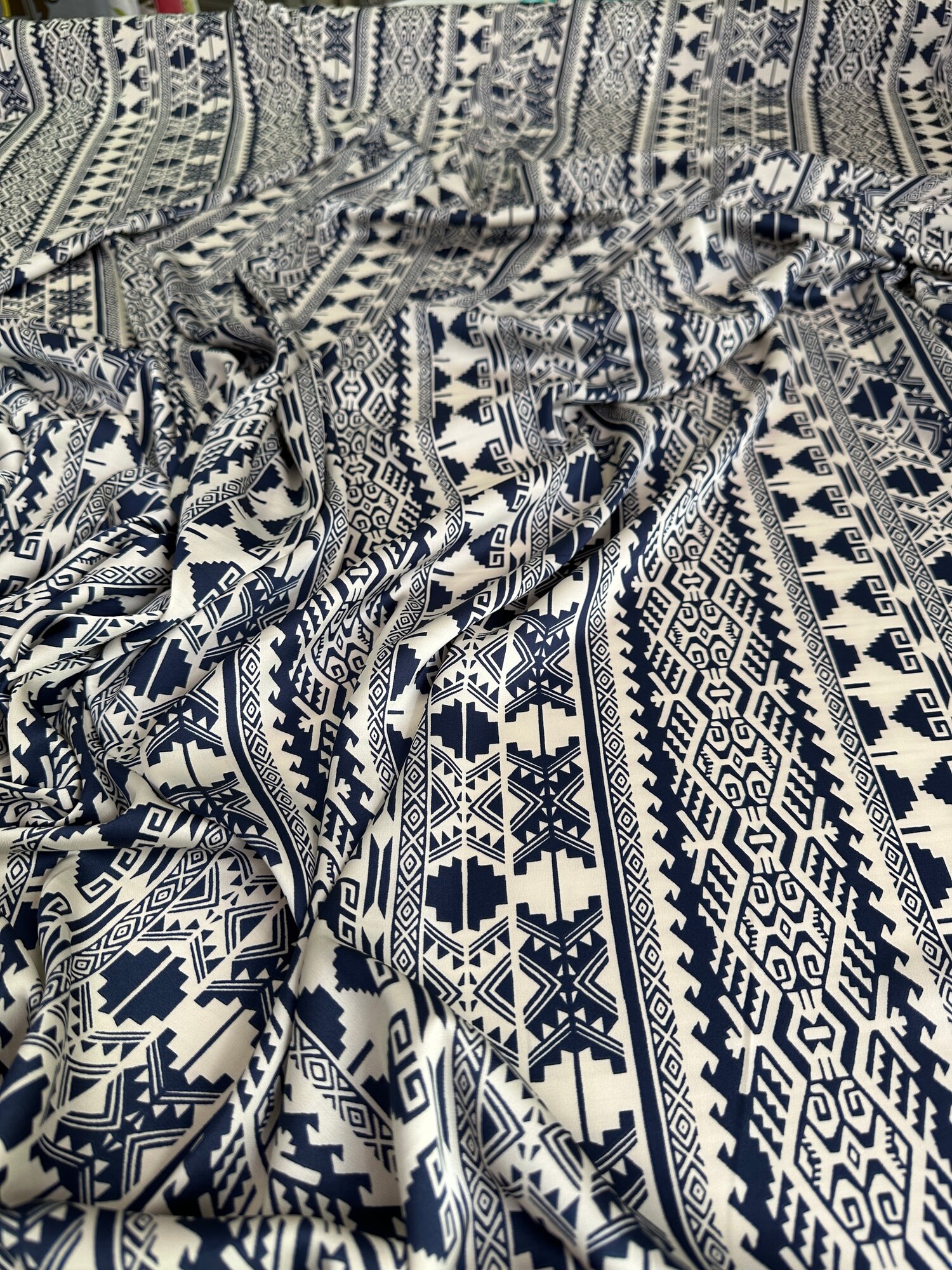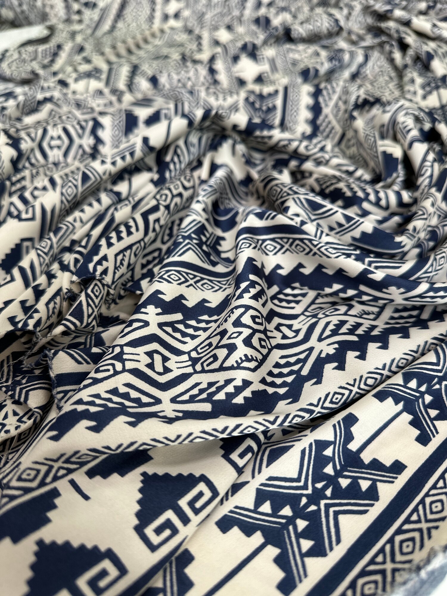 Купить Шелк Армани принт Орнамент темно-синий на бежевом отрез 1м*150 см