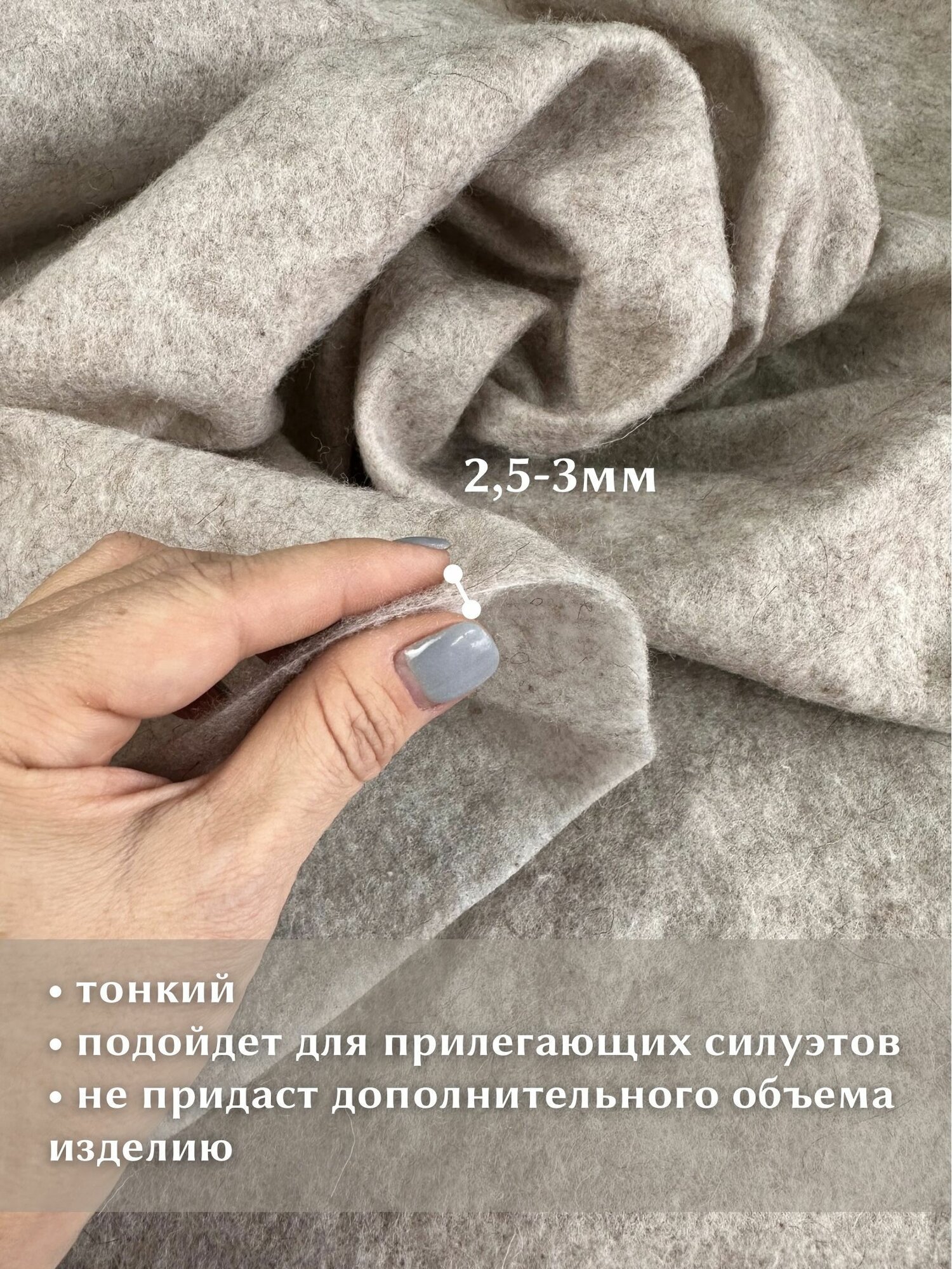 Ткань Linotex Шерстипон супертонкий утеплитель для одежды и рукоделия, отрез 1.5 метра