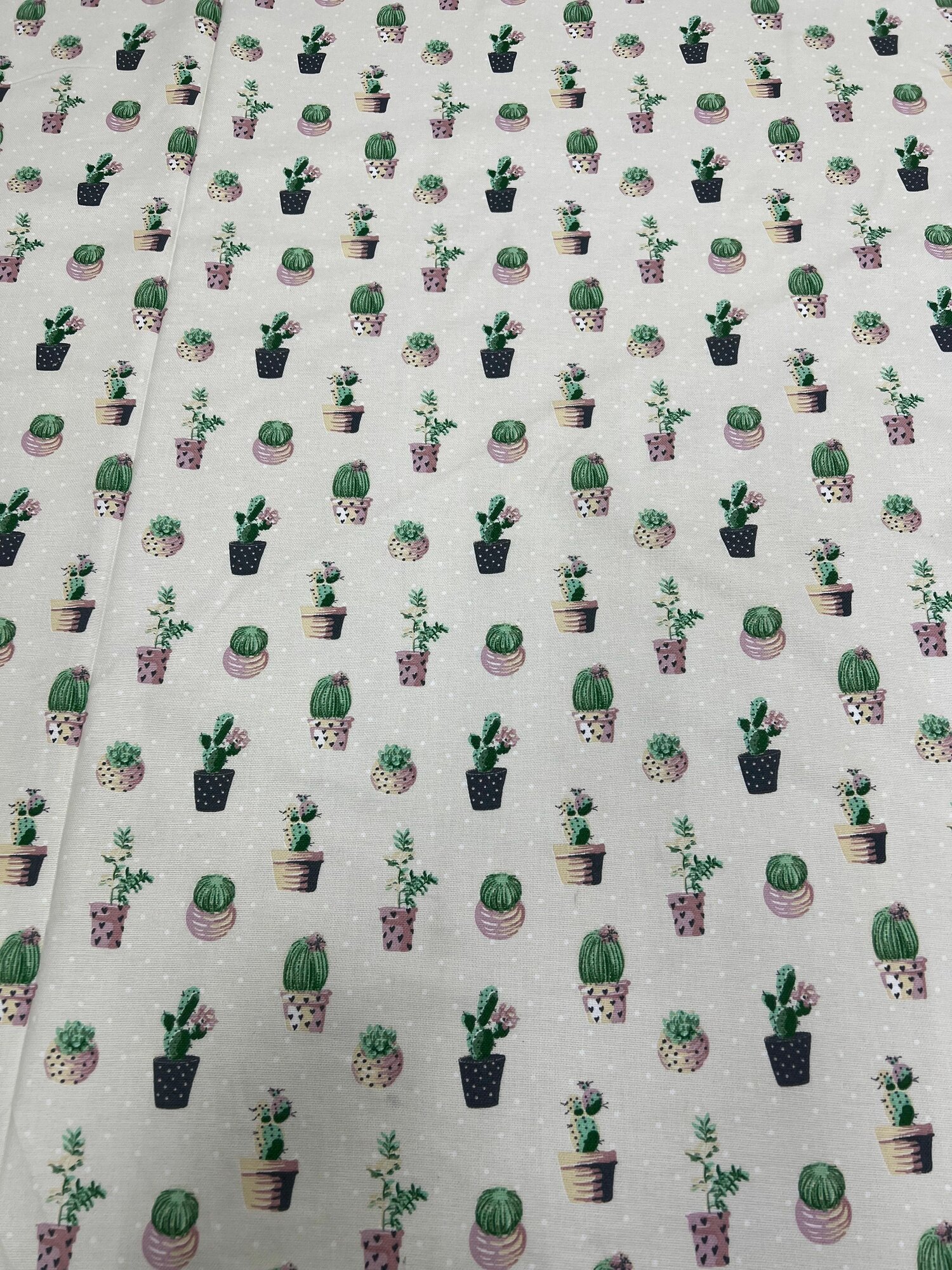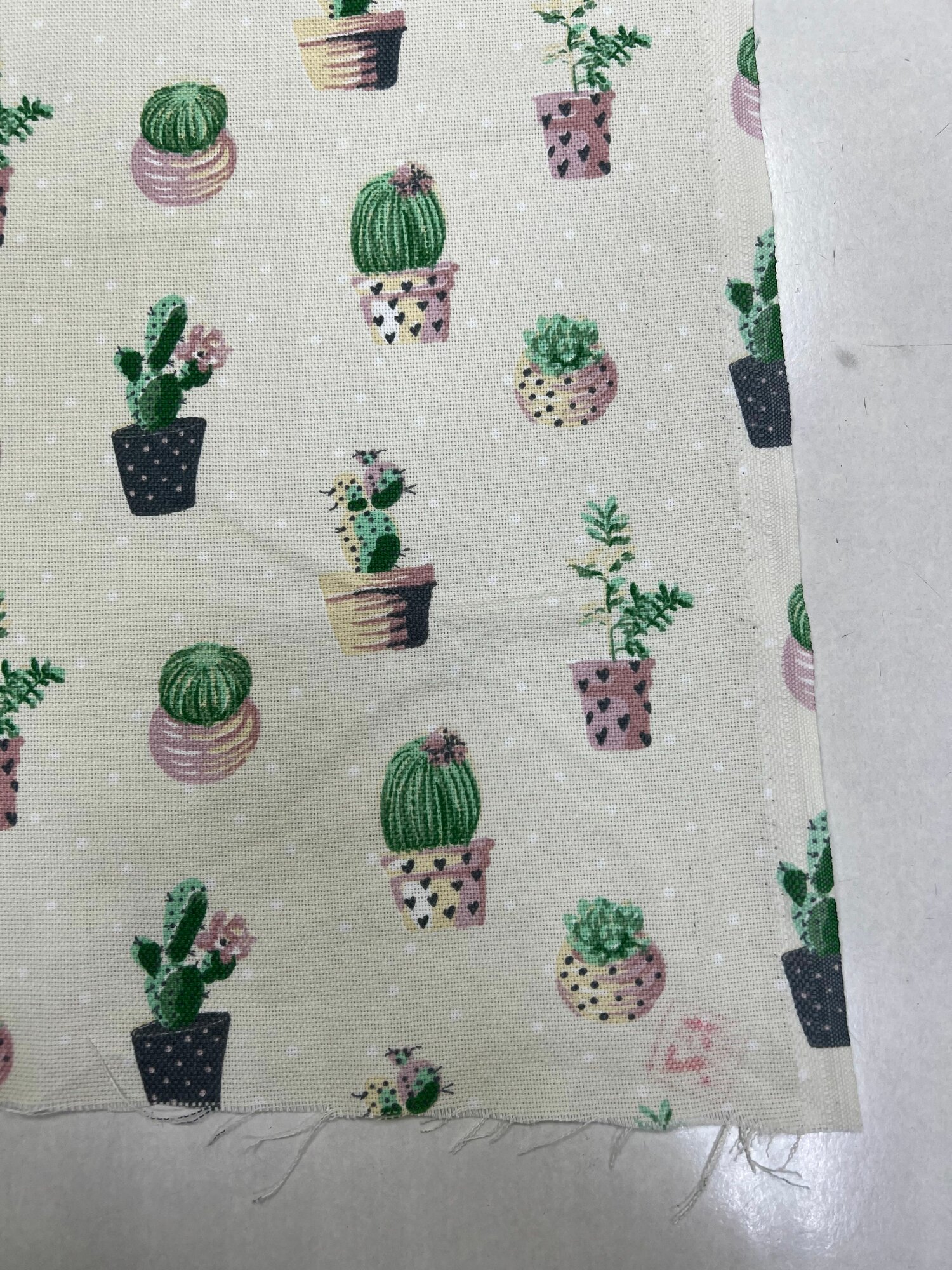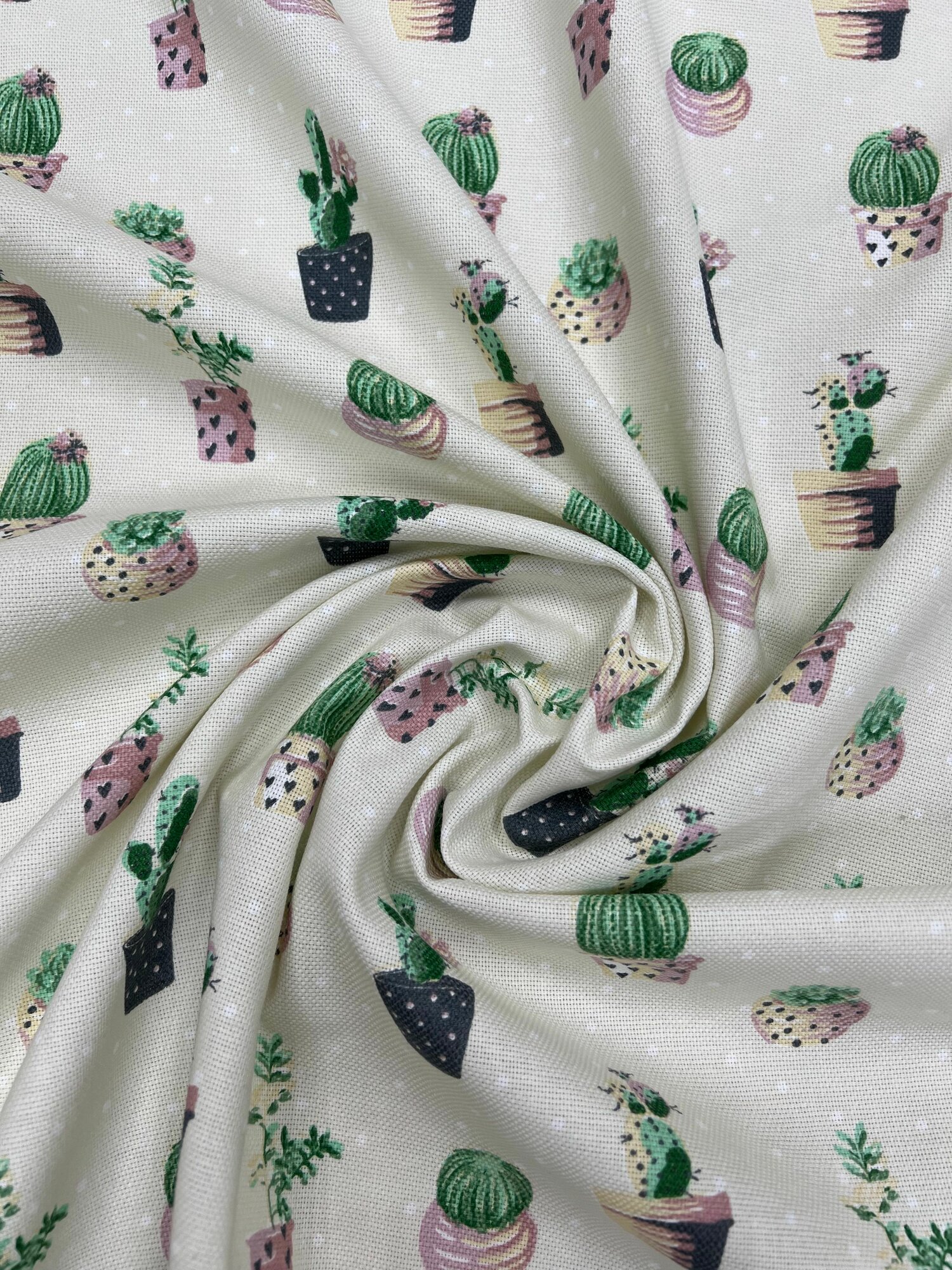 Ткань для шитья, Рогожка набивная, Коллекция кактусов, ширина 150 см, 100% хлопок, светло-бежевый, на отрез интересное: