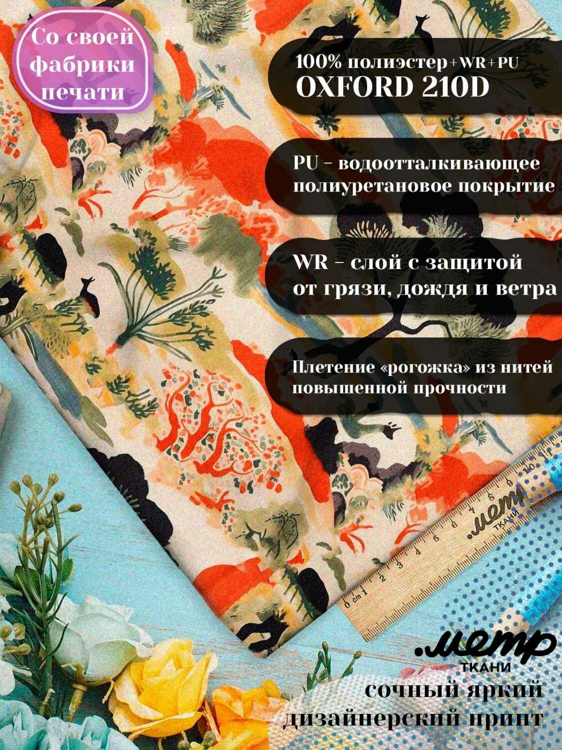 Oxford 210D WR PU, ткань для шитья уличная, отрез 148х100 см, принт