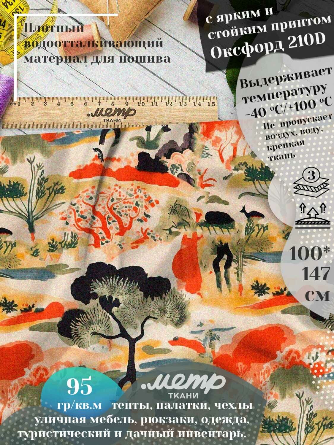 Водоотталкивающая ткань для шитья Oxford 210D, уличная, отрез 148х100 см, принт
