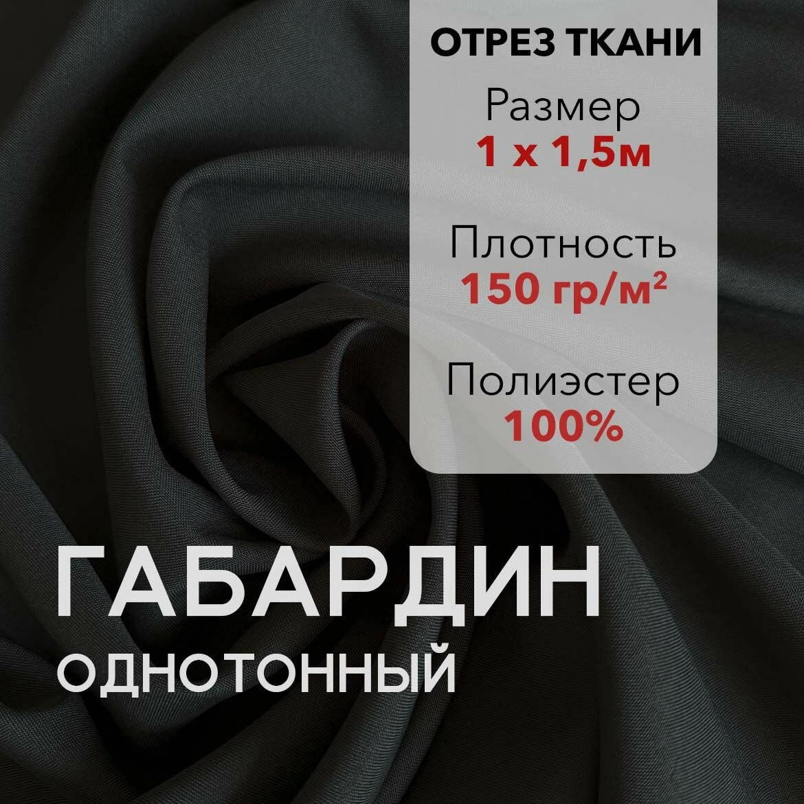 Ткань для Шитья Габардин Темно-Серый, Отрез 1,5 м, плотность 150 г/м2, ширина 150 см, для шитья и рукоделия