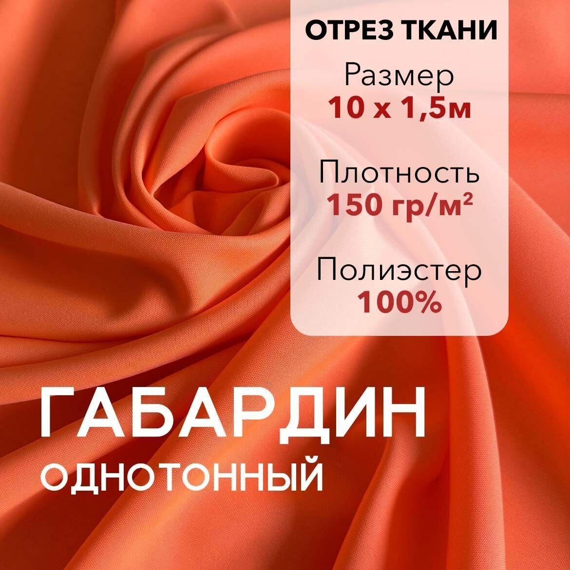 Ткань для Шитья Габардин Неон-Оранжевый, Отрез 1.5 м, плотность 150 г/м2, ширина 150 см, для шитья и рукоделия
