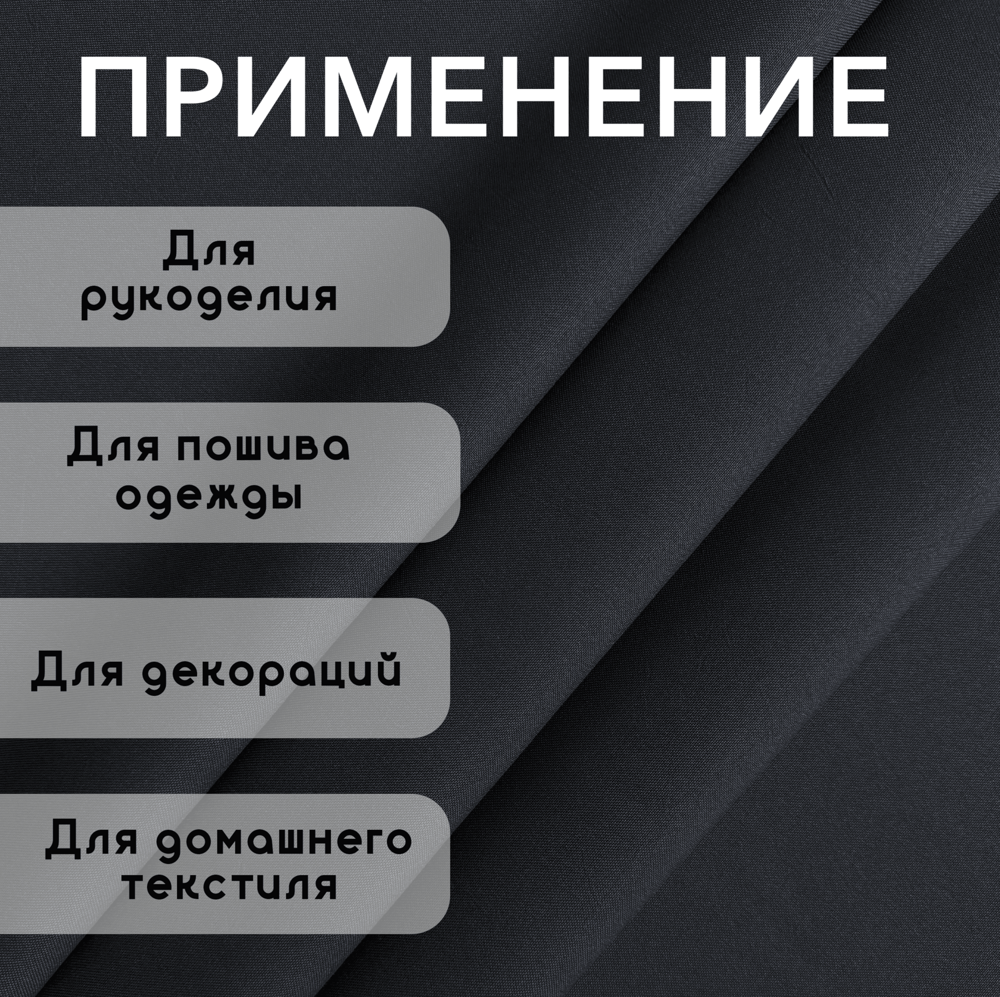 Ткань для Шитья Габардин Темно-Серый, Отрез 1 м, плотность 150 г/м2, ширина 150 см, для шитья и рукоделия