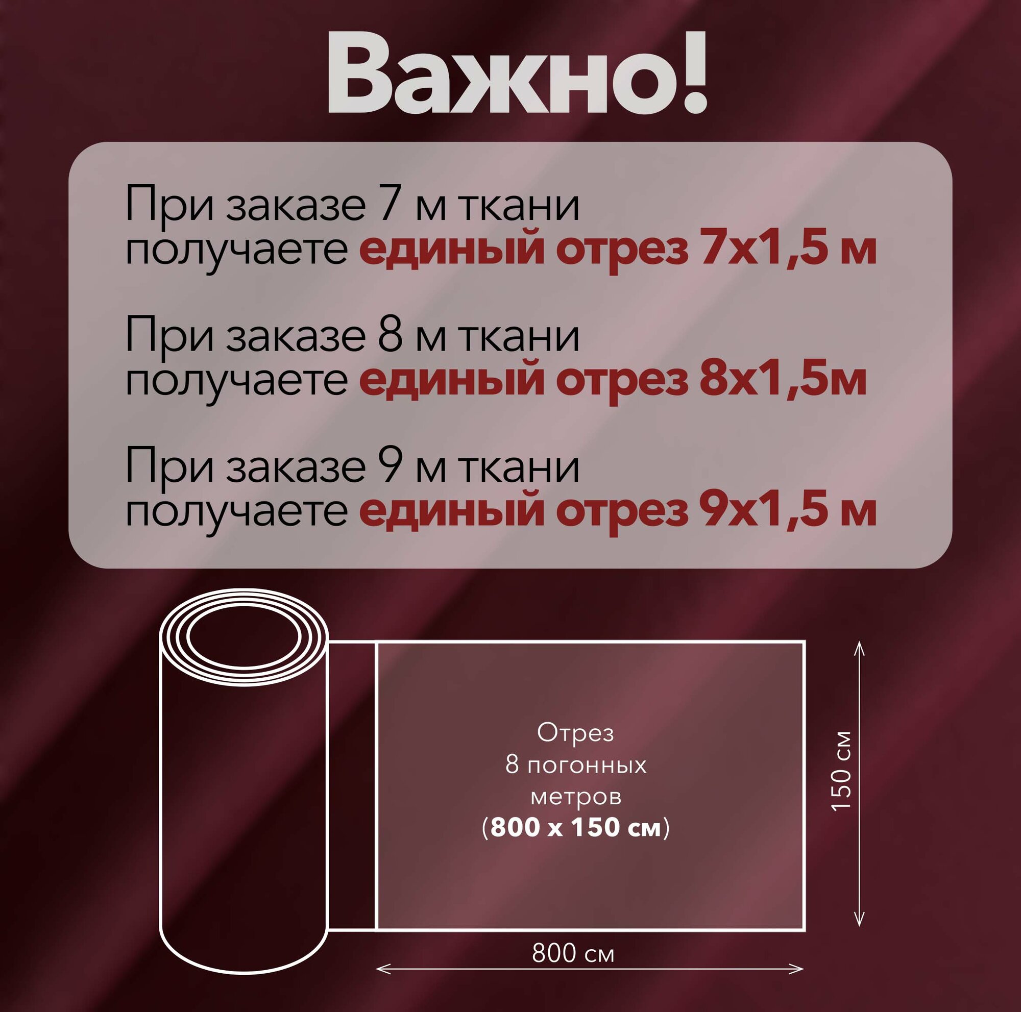 Ткань для Шитья Габардин Бордовый, Отрез 9 м, плотность 150 г/м2, ширина 150 см, для шитья и рукоделия