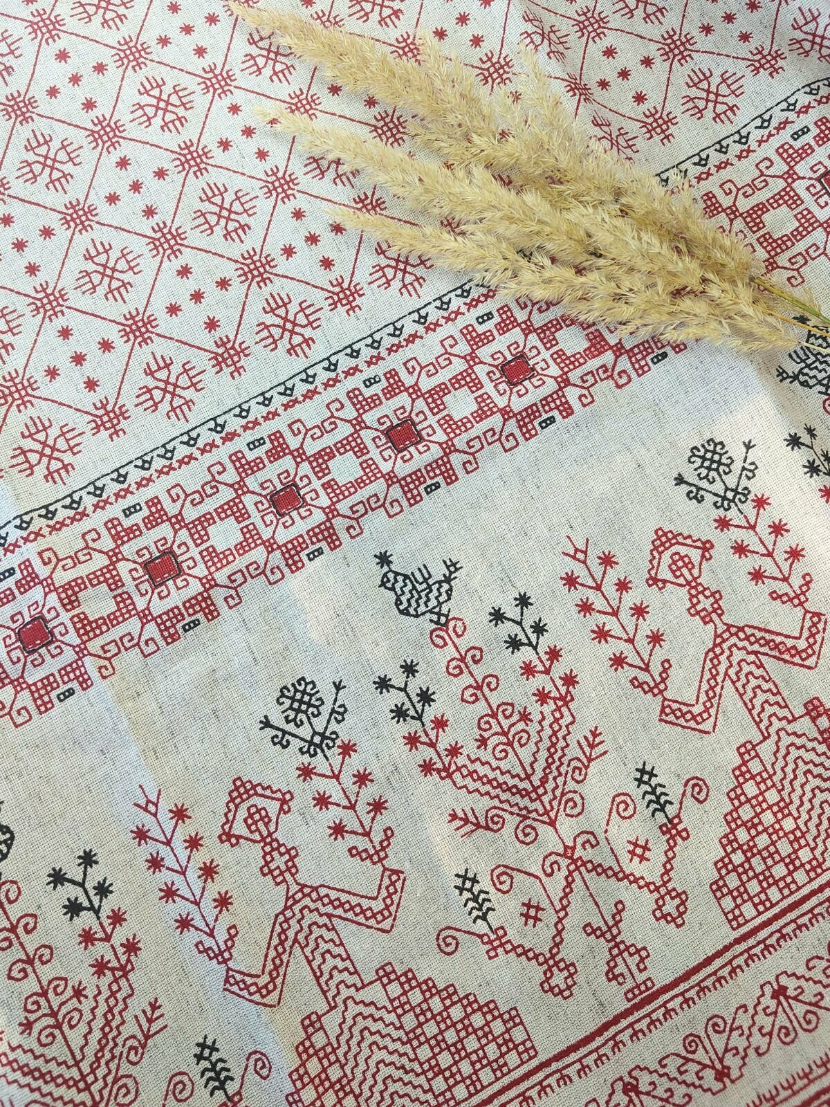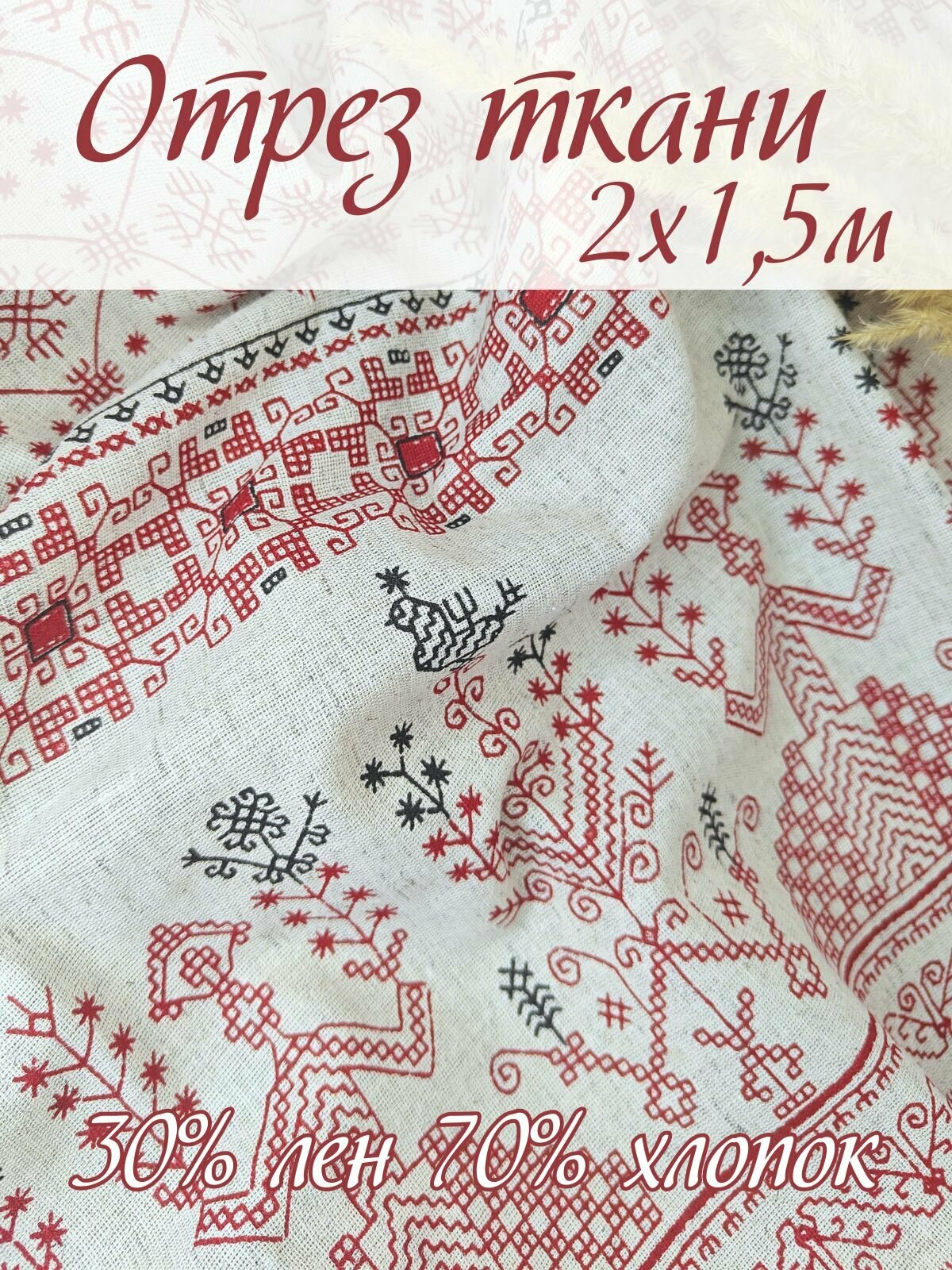 Купить Ткань полульняная с принтом 2х1,5м Макошь