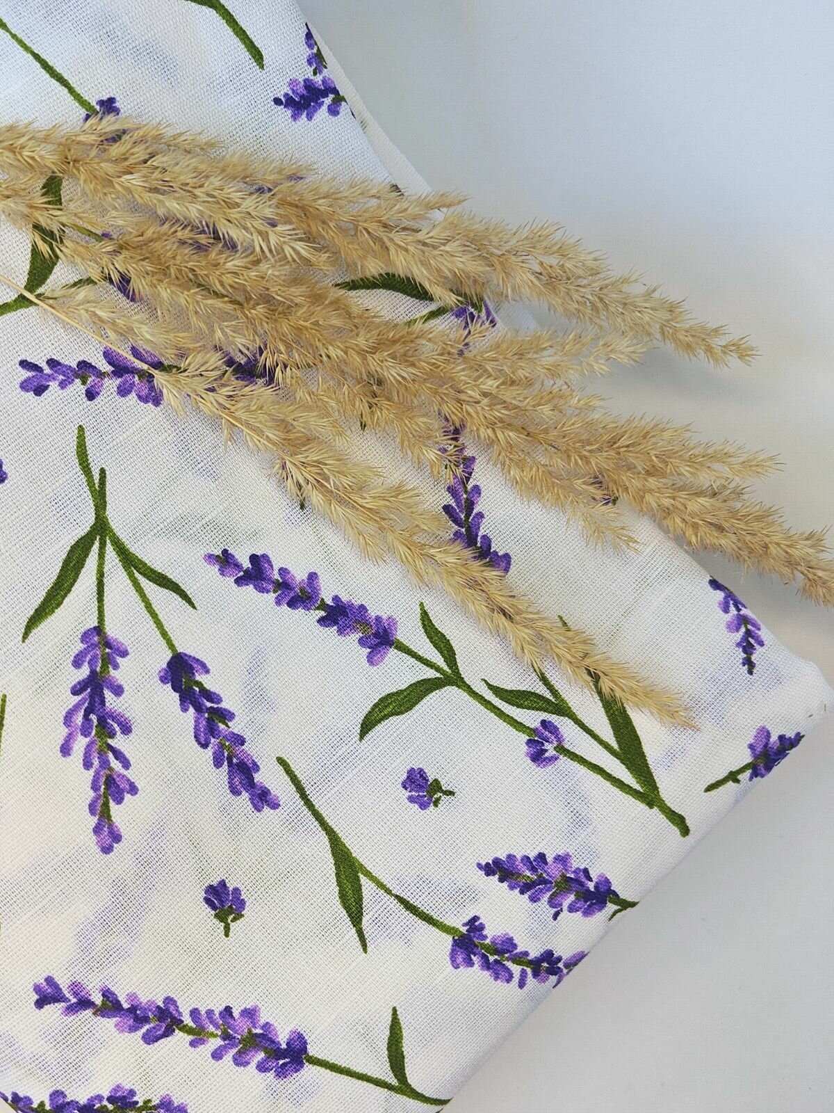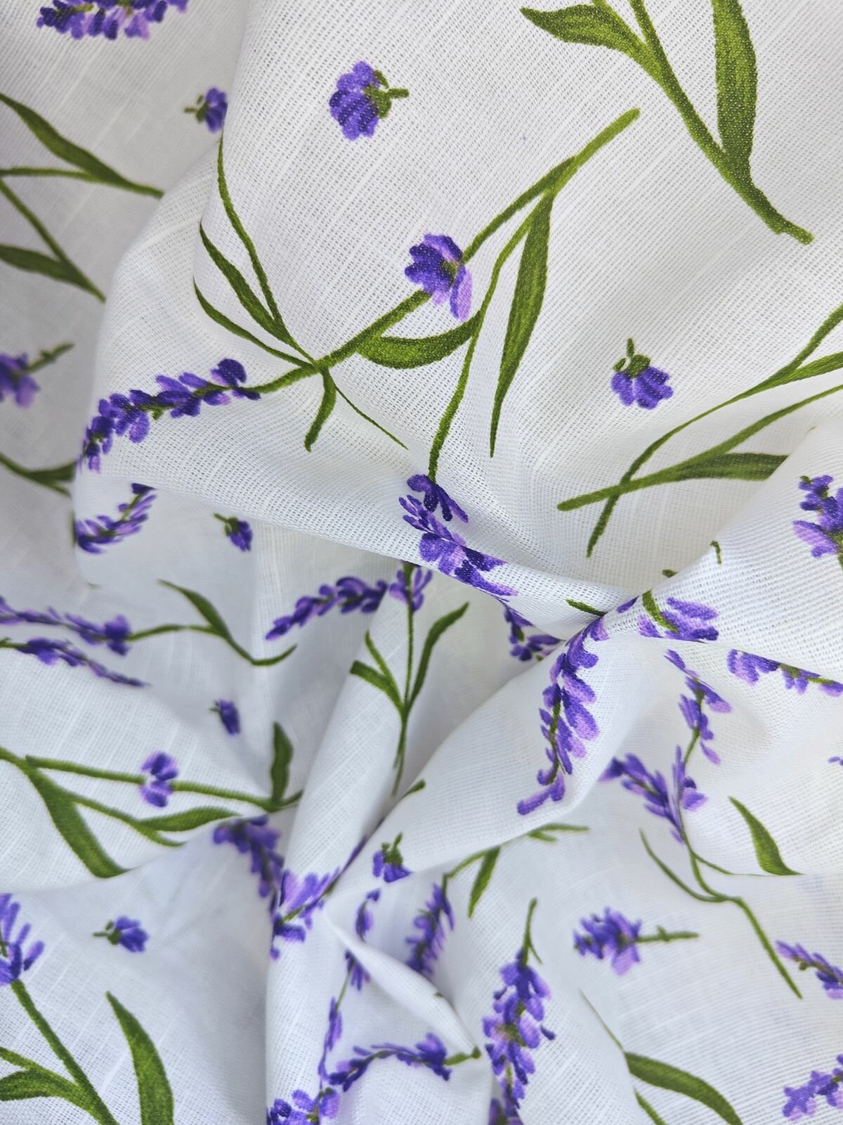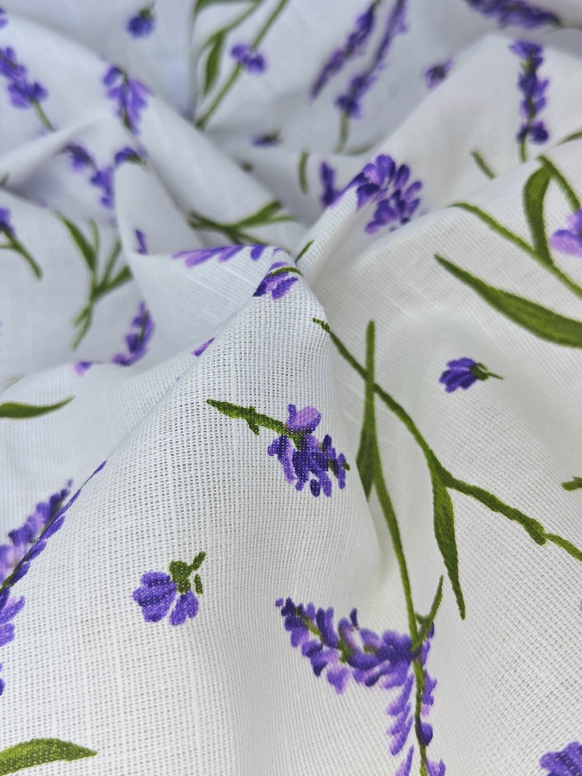 Купить Ткань полульняная с принтом 2х1,5м Лаванда на белом