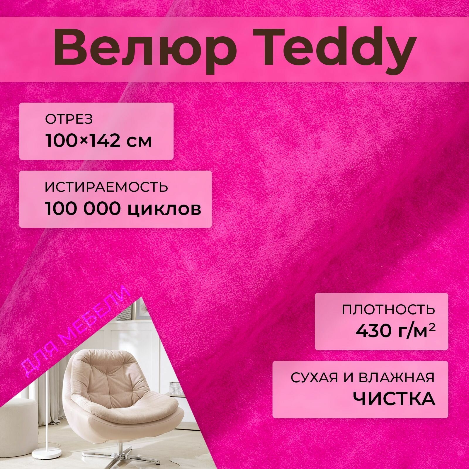 Купить Мебельная ткань велюр Teddy 641 Розовая фуксия 1 погонный метр шириной 142см, материал для обивки и перетяжки мебели антивандальный