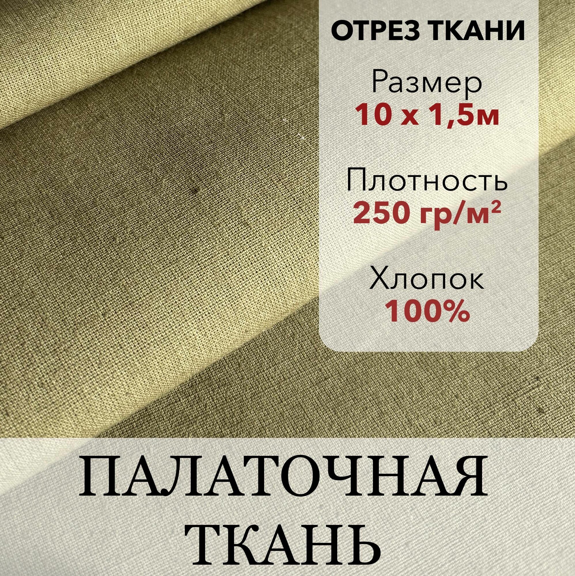 Ткань Палаточная Хаки, во пропитка, хлопок 100%, отрез 8 м, ширина 150 см, плотность 250 г/м