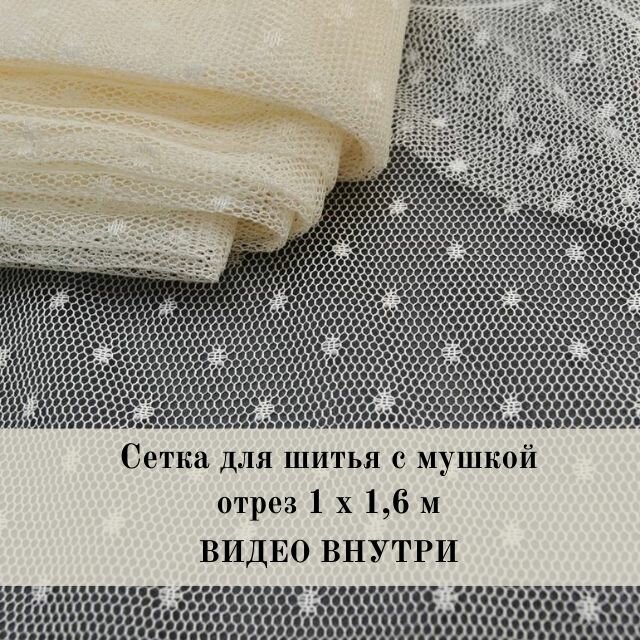 СохранитьСетка для шитья в мушку. Ткань сетка для декора нижнего белья и одежды кремовая. Фатин в горошек. Отрез 1 м х 1,6 м интересное: