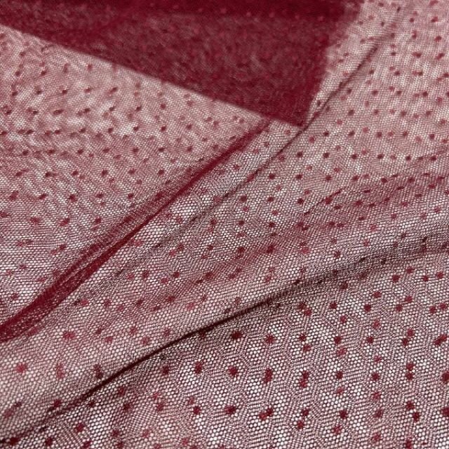 Сетка для шитья в мушку. Ткань сетка для декора нижнего белья и одежды Красная (бордовая)/Вино. Фатин в горошек. Отрез 1 м х 1,6 м