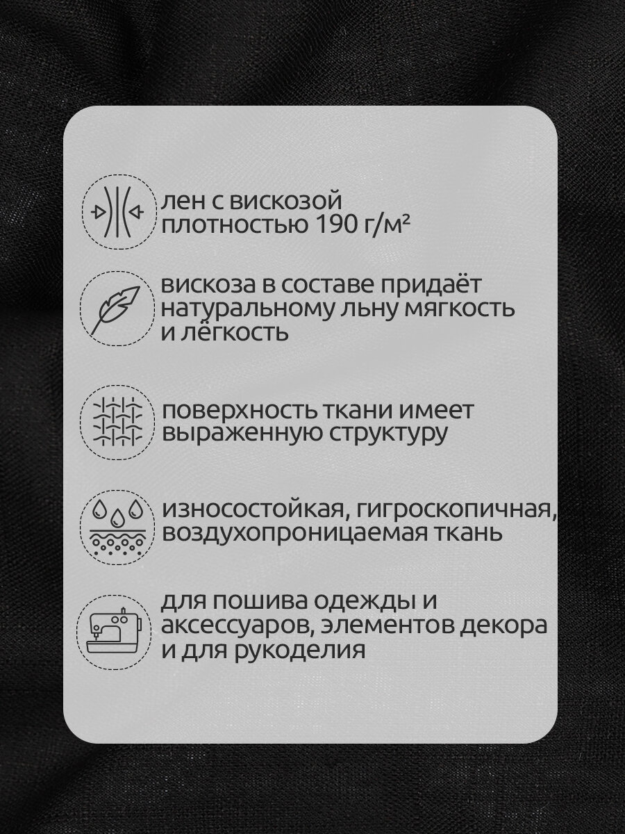 Купить Ткань льняная 190 г/м² лен 40%, вискоза 60% шир.140 см арт. TBY. Li.1002.16 цв.16 черный уп.2м