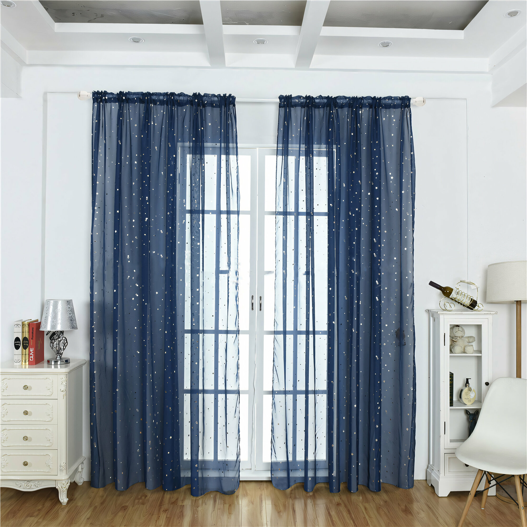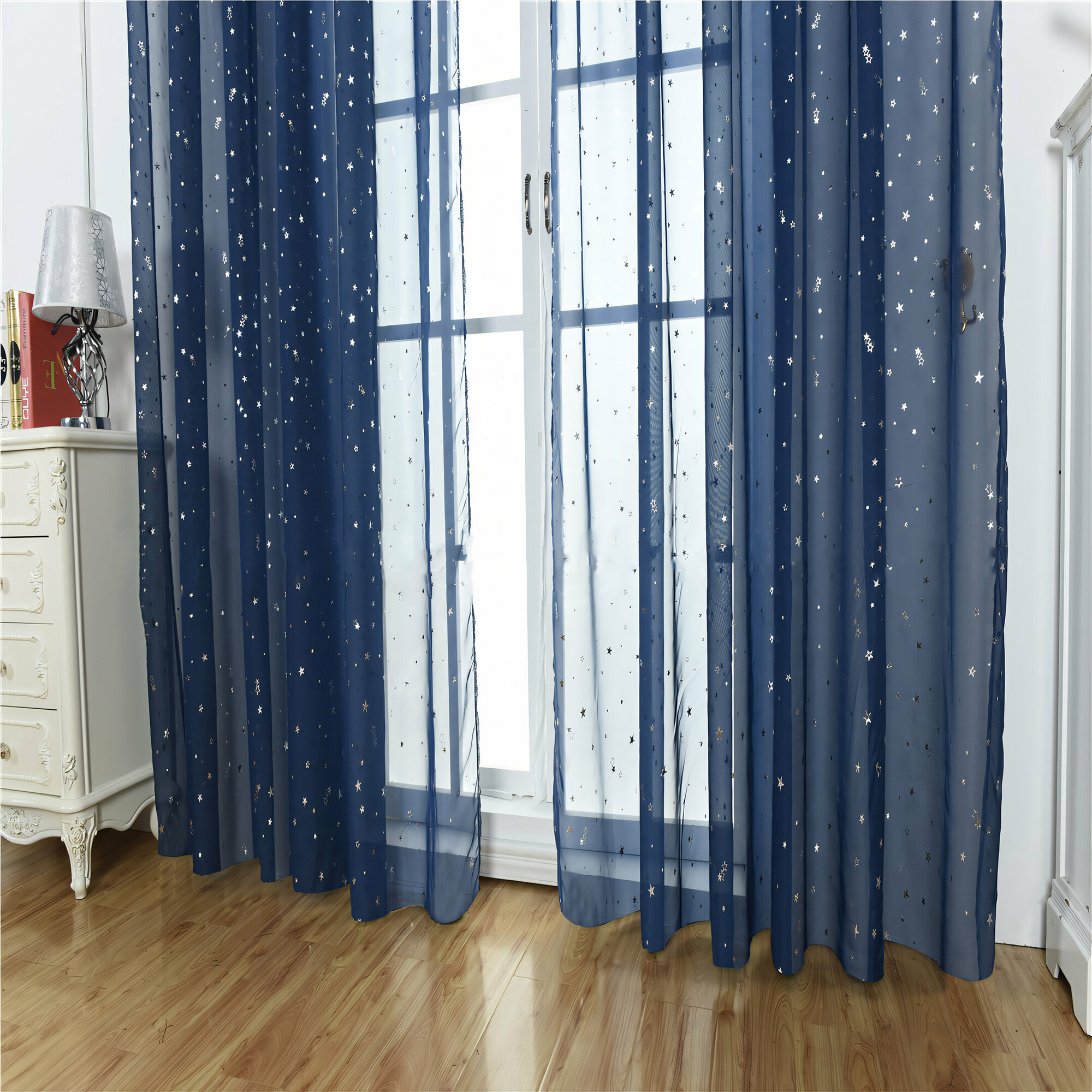 Купить Тюль со звездами цветная синяя 300х250 см, вуаль белая для зала, спальни, кухни, длинная органза, занавески под лен
