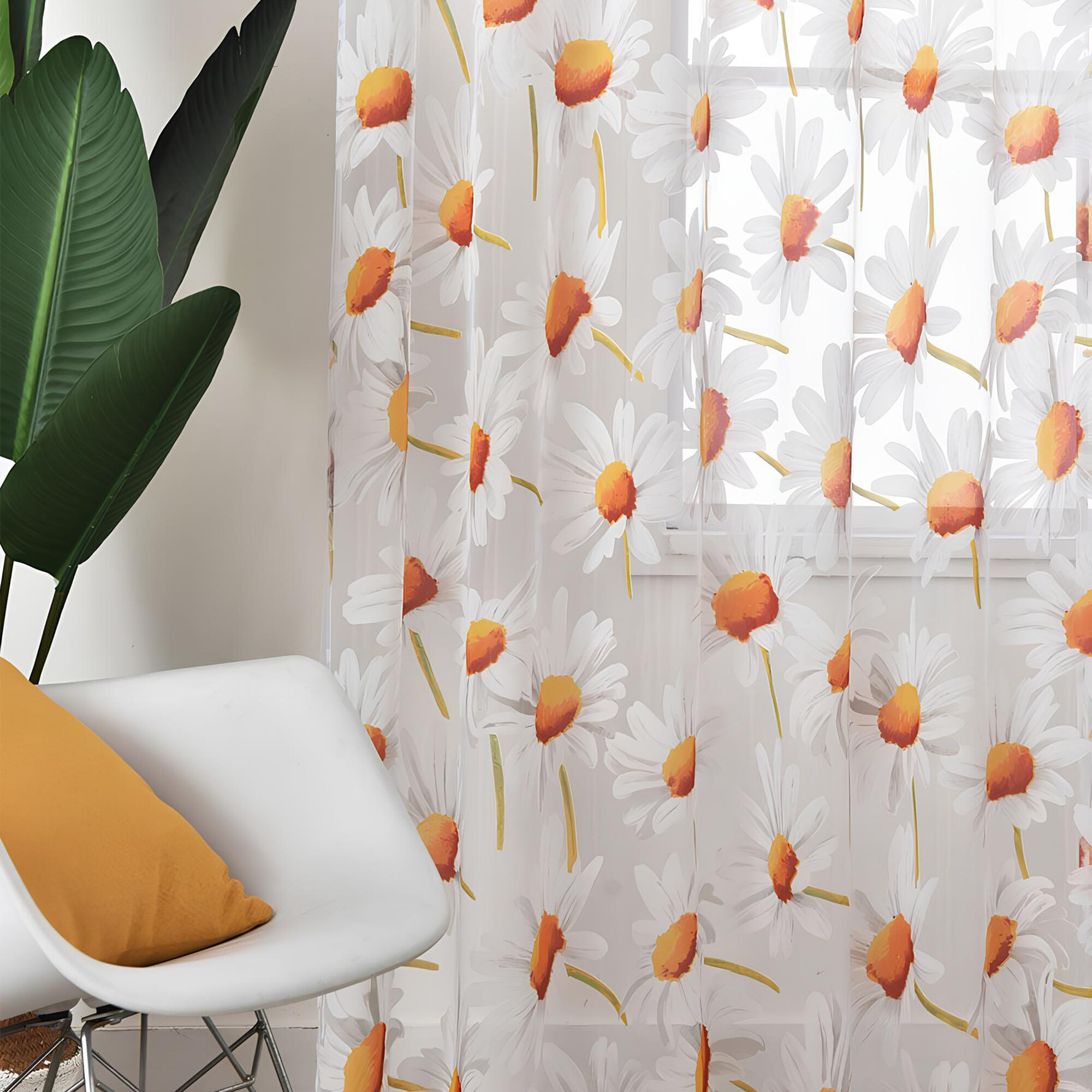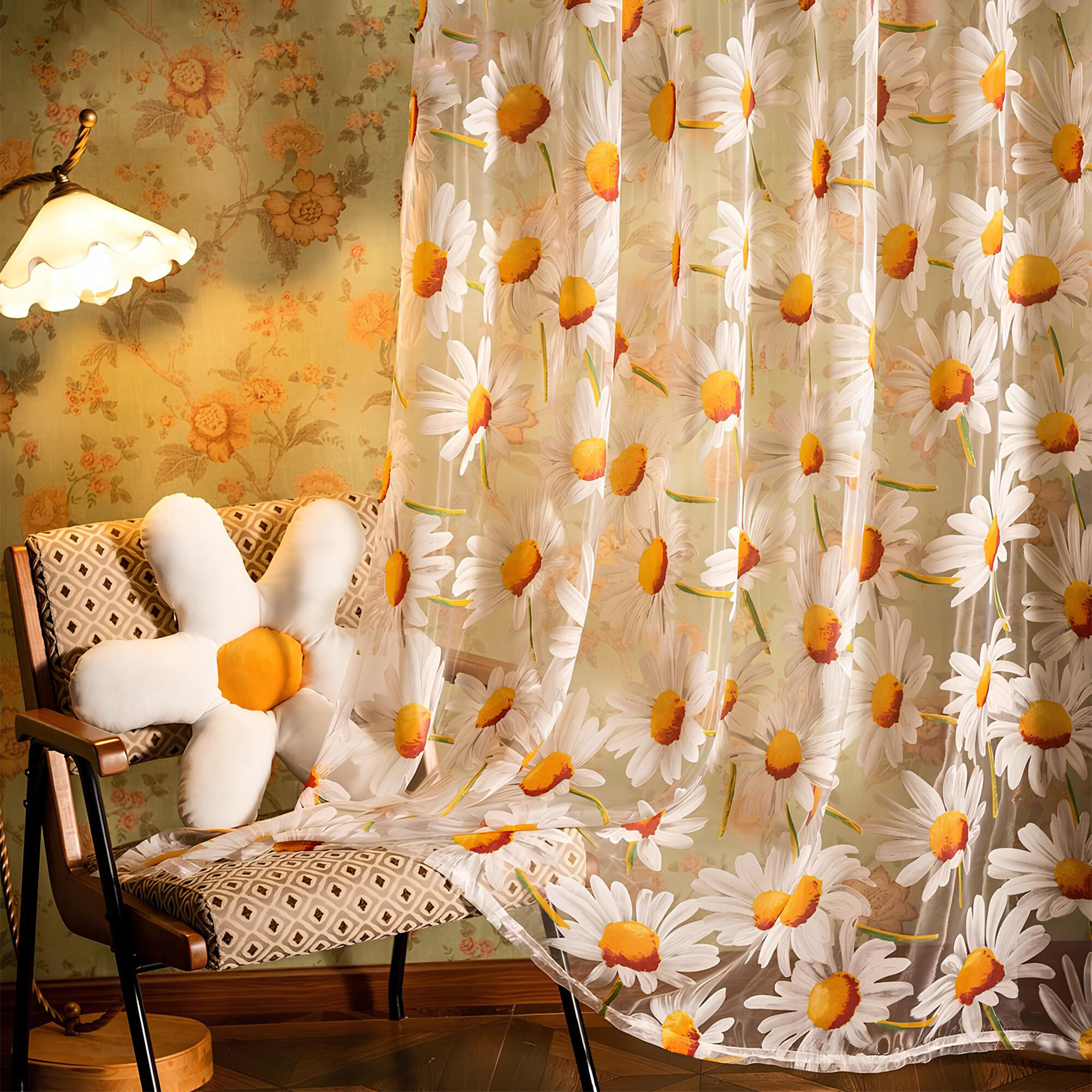 СохранитьТюль с ромашками цветная белая 300х250 см, вуаль для зала, спальни, кухни, длинная органза, занавески под лен интересное: