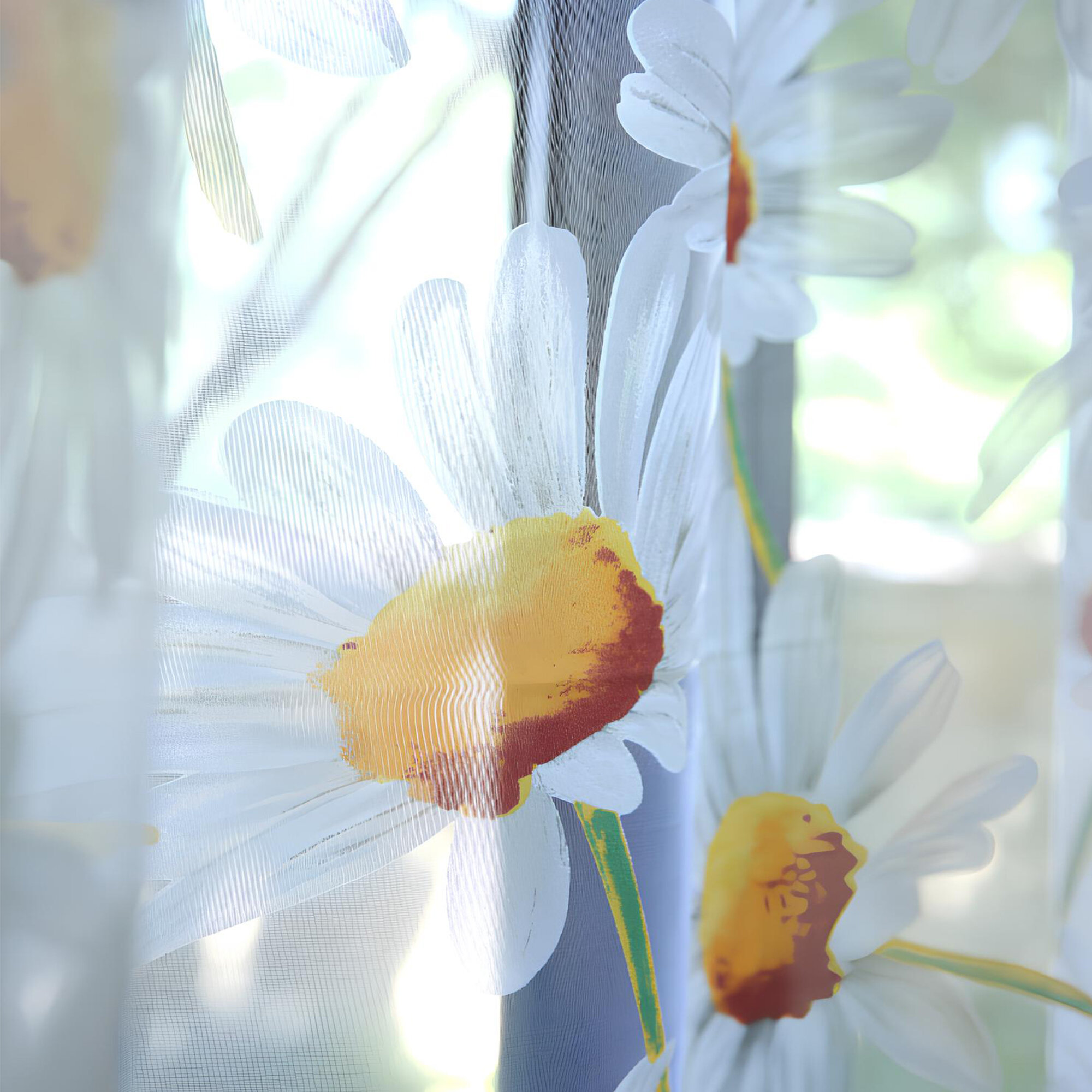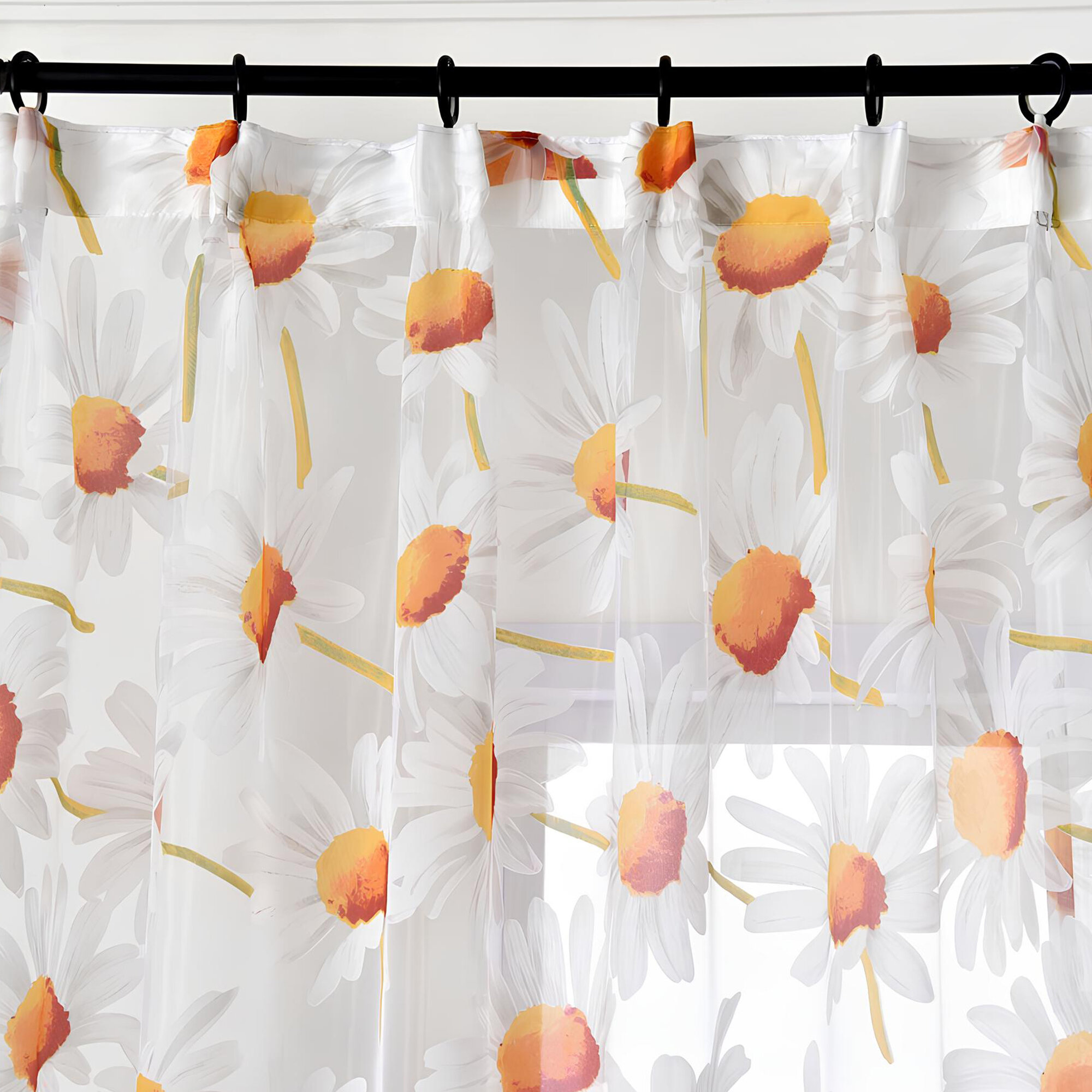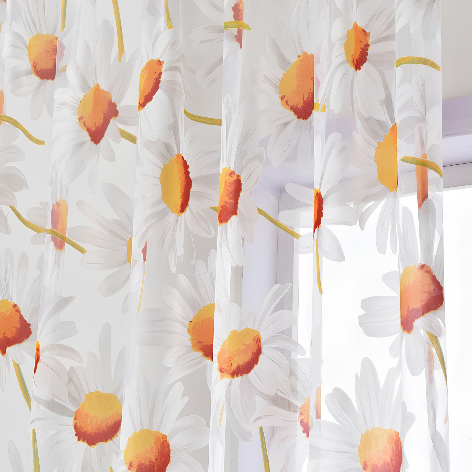 Купить Тюль с ромашками цветная белая 300х250 см, вуаль для зала, спальни, кухни, длинная органза, занавески под лен