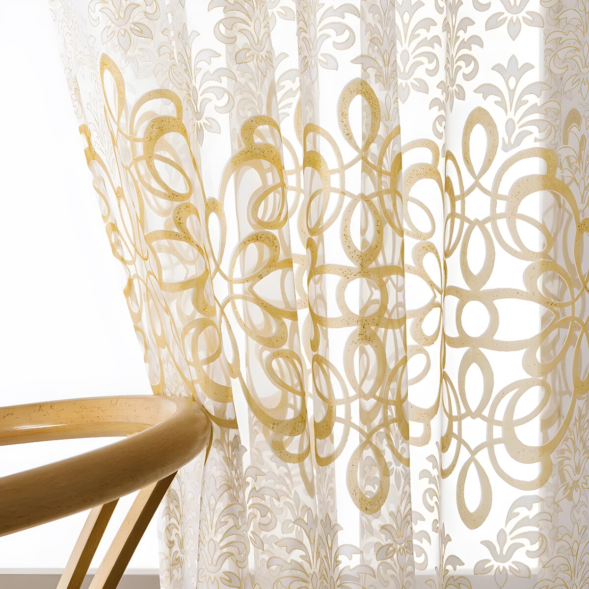 СохранитьТюль с рисунком виньетки цветная коричневая 300х250 см, вуаль белая для зала, спальни, кухни, длинная органза, занавески интересное: