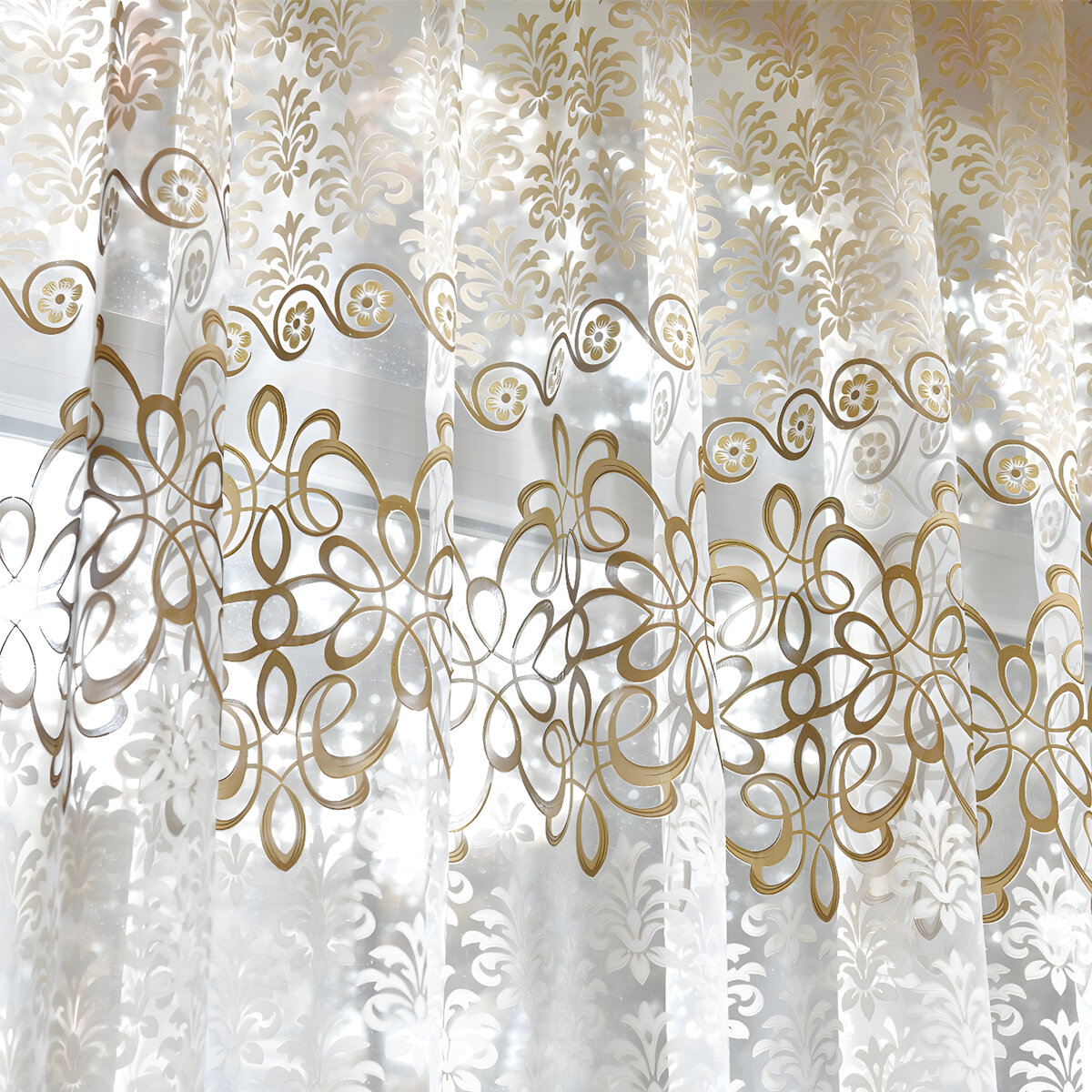 Купить Тюль с рисунком виньетки цветная коричневая 300х250 см, вуаль белая для зала, спальни, кухни, длинная органза, занавески