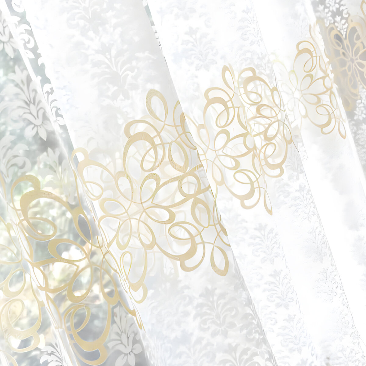 Тюль с рисунком виньетки цветная серая 300х250 см, вуаль белая для зала, спальни, кухни, длинная органза, занавески