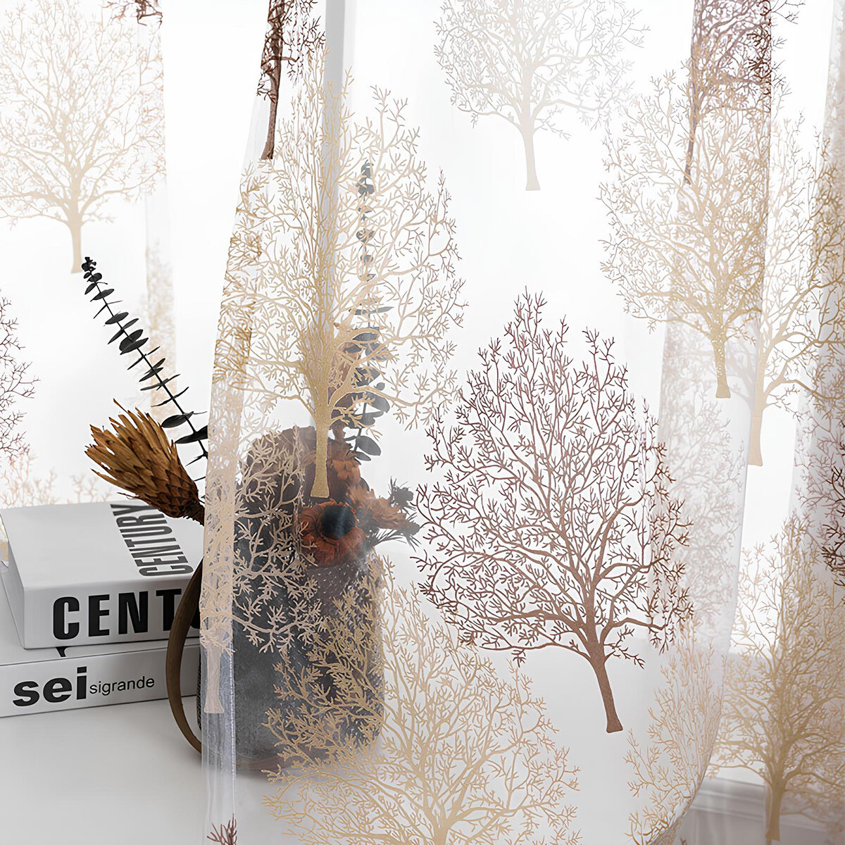 СохранитьТюль с рисунком деревья цветная коричневая 300х250 см, вуаль белая для зала, спальни, кухни, длинная органза, занавески интересное: