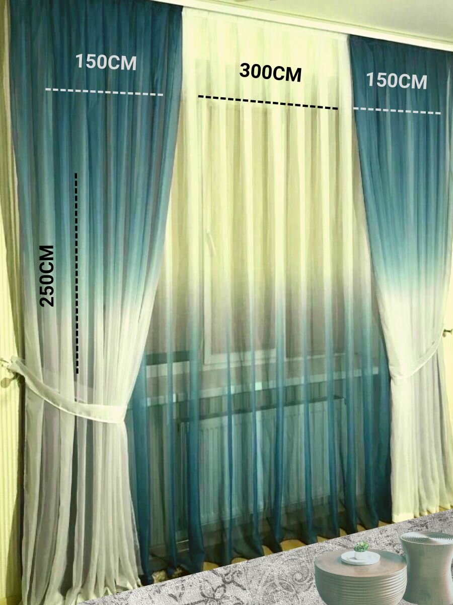 Тюль вуаль омбре 600/250 комплект из 3 шт