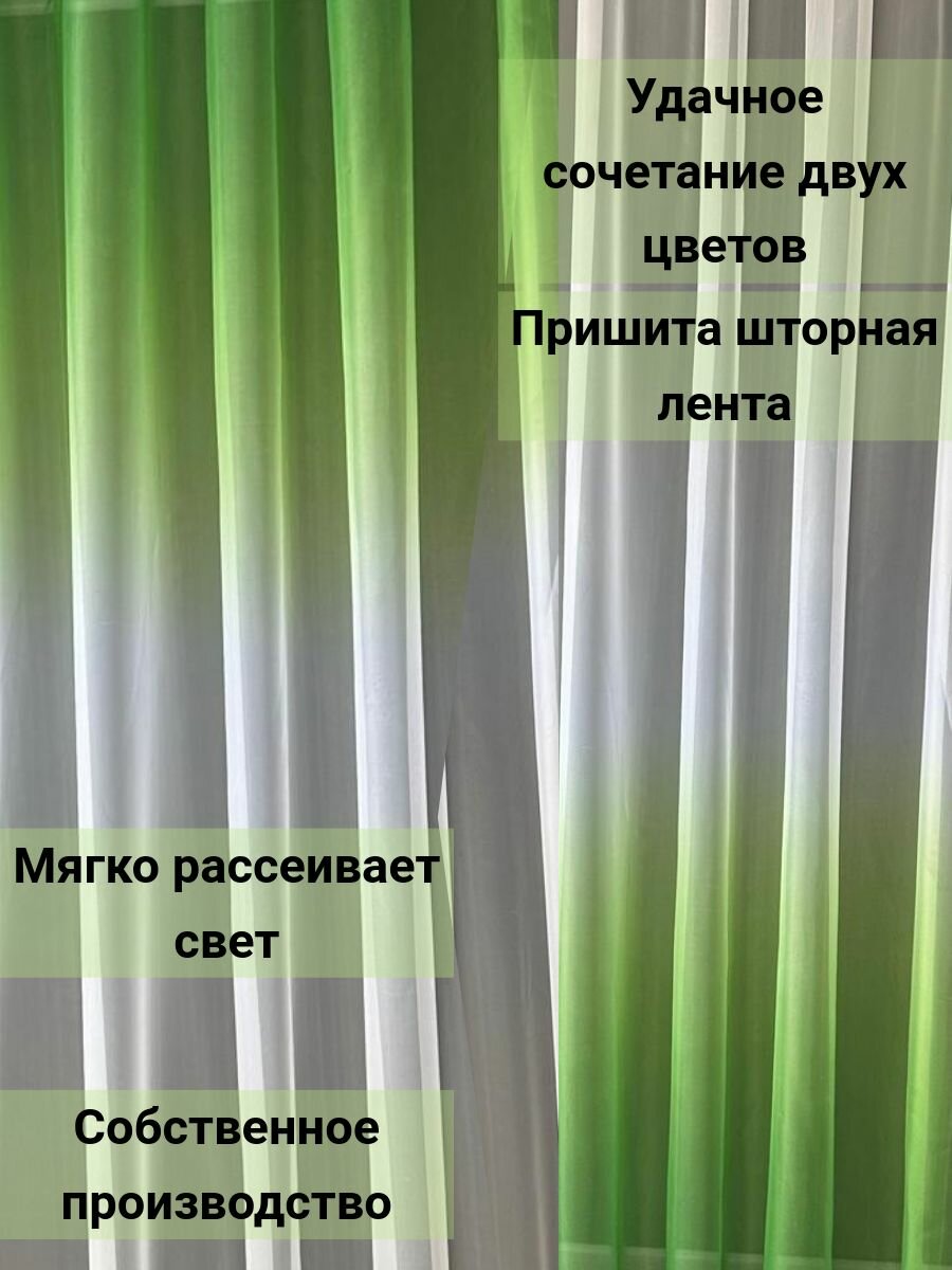 Тюль градиент в гостиную, в спальню, на кухню на шторной ленте 400х250