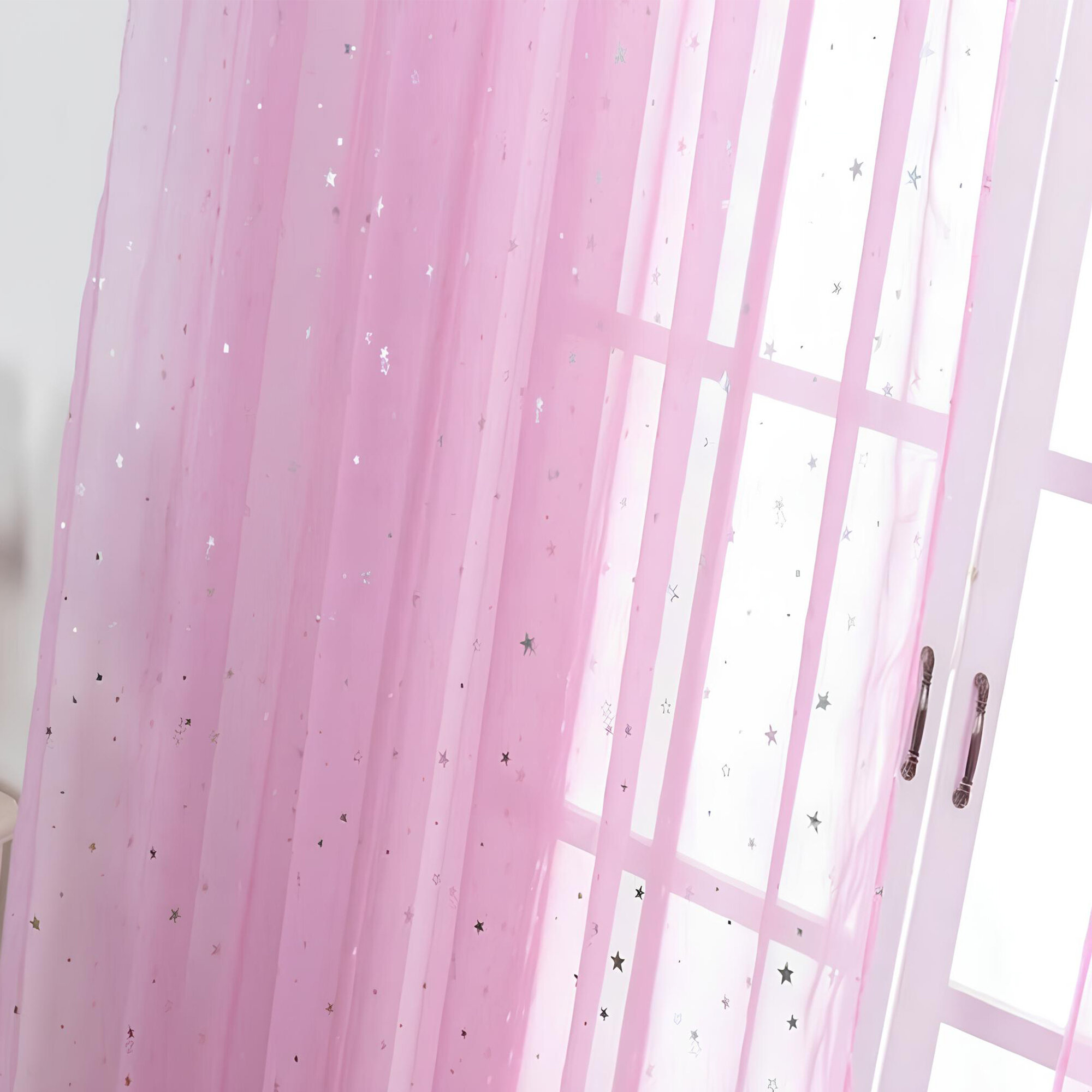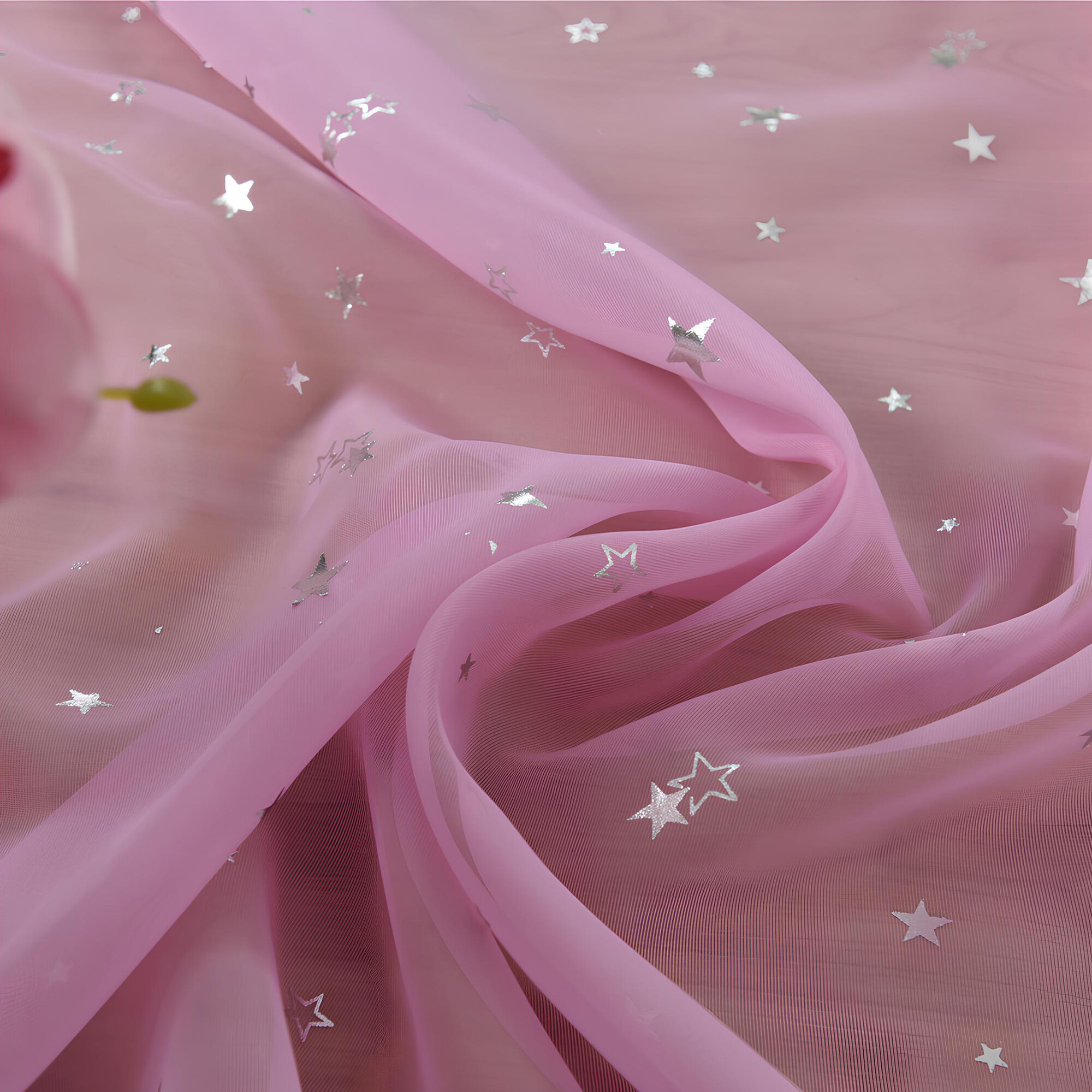 Купить Тюль цветная со звездами, розовая 100х270 см, вуаль белая для зала, спальни, кухни, длинная органза, занавески под лен