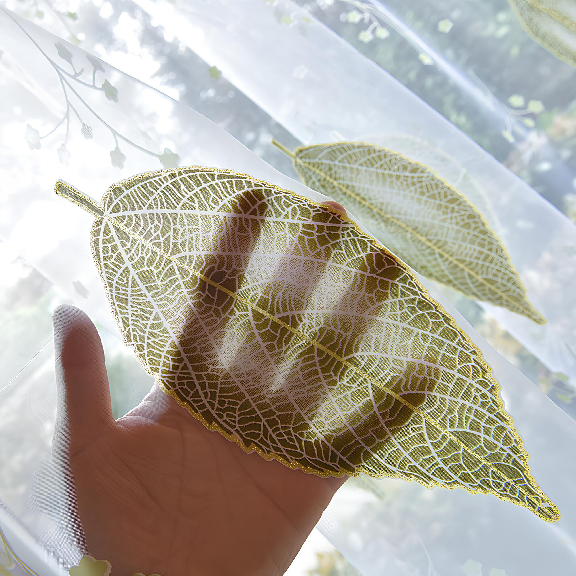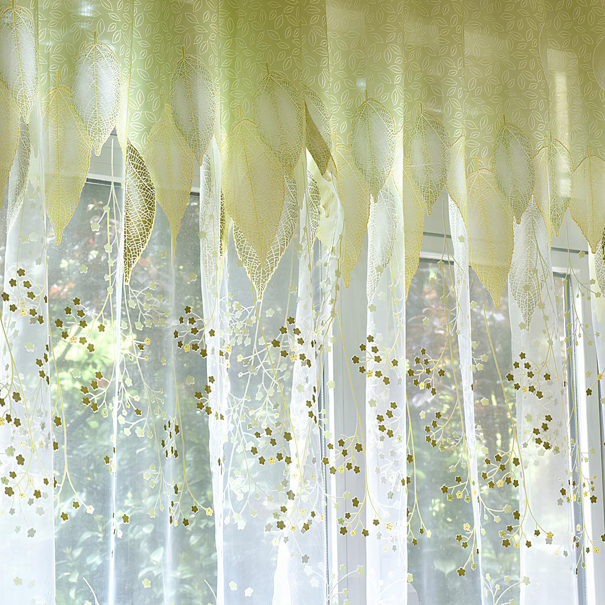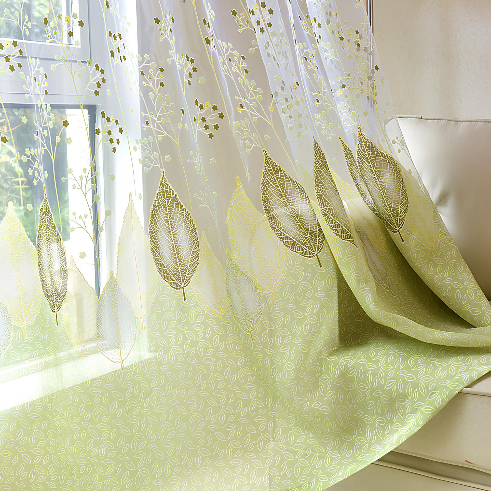 СохранитьТюль с рисунком листья цветная зеленая 150х250 см, вуаль белая для зала, спальни, кухни, длинная органза, занавески интересное:
