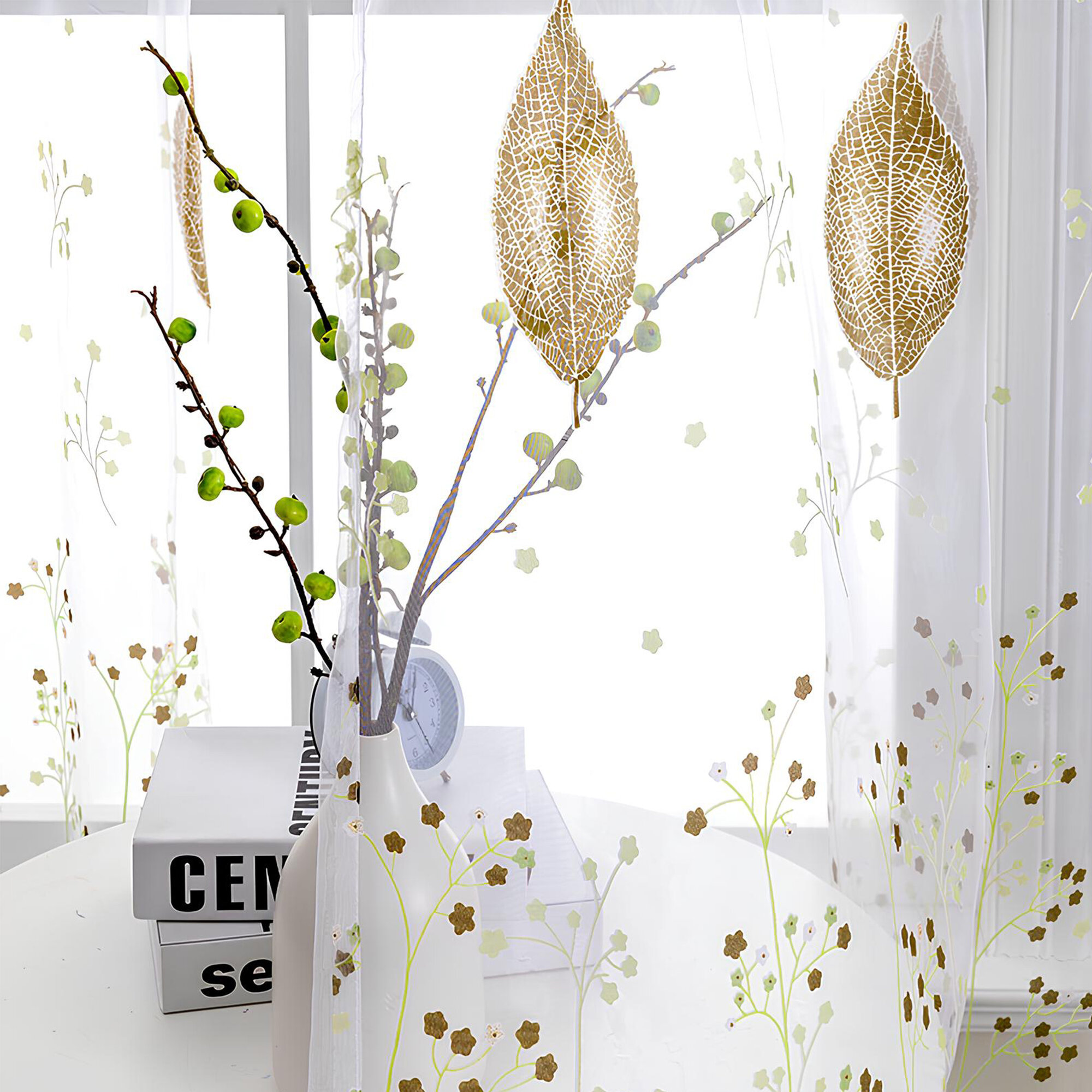 Купить Тюль с рисунком листья цветная зеленая 150х250 см, вуаль белая для зала, спальни, кухни, длинная органза, занавески