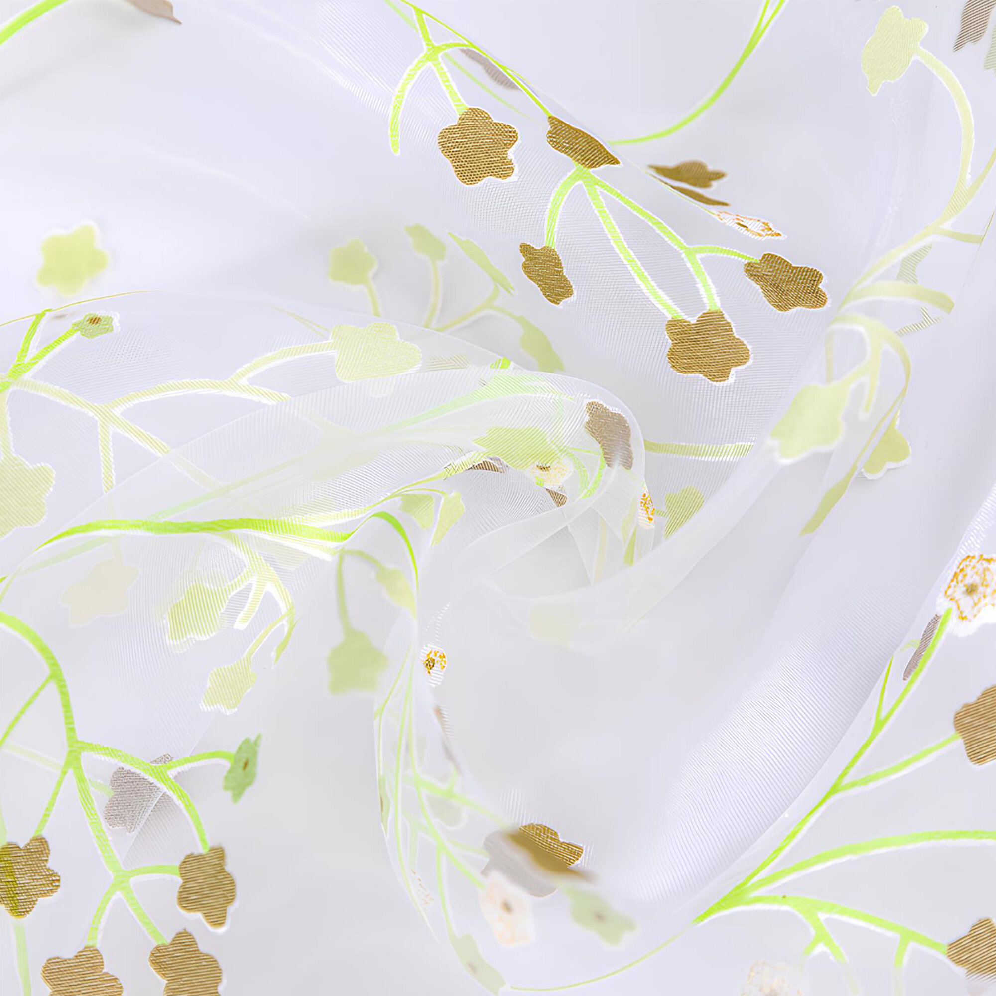 Тюль цветная с рисунком Тюльпан зеленая 100х270 см, вуаль белая для зала, спальни, кухни, длинная органза, занавески